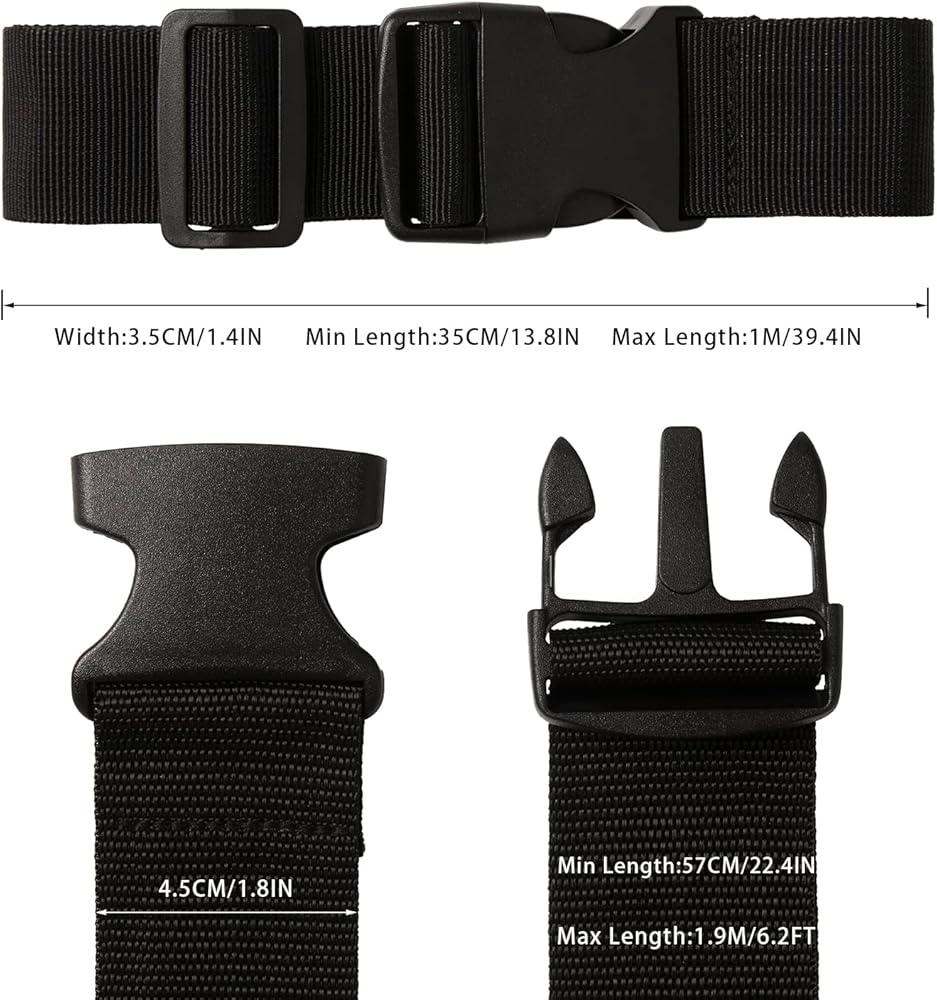 أشرطة الأمتعة القابلة للتعديل - حزام الأمتعة عبارة عن حزام مرن مصنوع من مادة متينة تستخدم لتأمين وربط الأمتعة أو حقائب السفر. هذه الأشرطة قابلة للتعديل ويمكن تشديدها لتأمين الأمتعة ومنعها من الفتح أو التحرك أثناء النقل. تعتبر أحزمة الأمتعة مفيدة بشكل خاص لتأمين الحقائب الكبيرة أو الثقيلة، أو عند السفر بالطائرة أو القطار، لأنها يمكن أن تساعد في منع تلف أو فقدان الممتلكات.