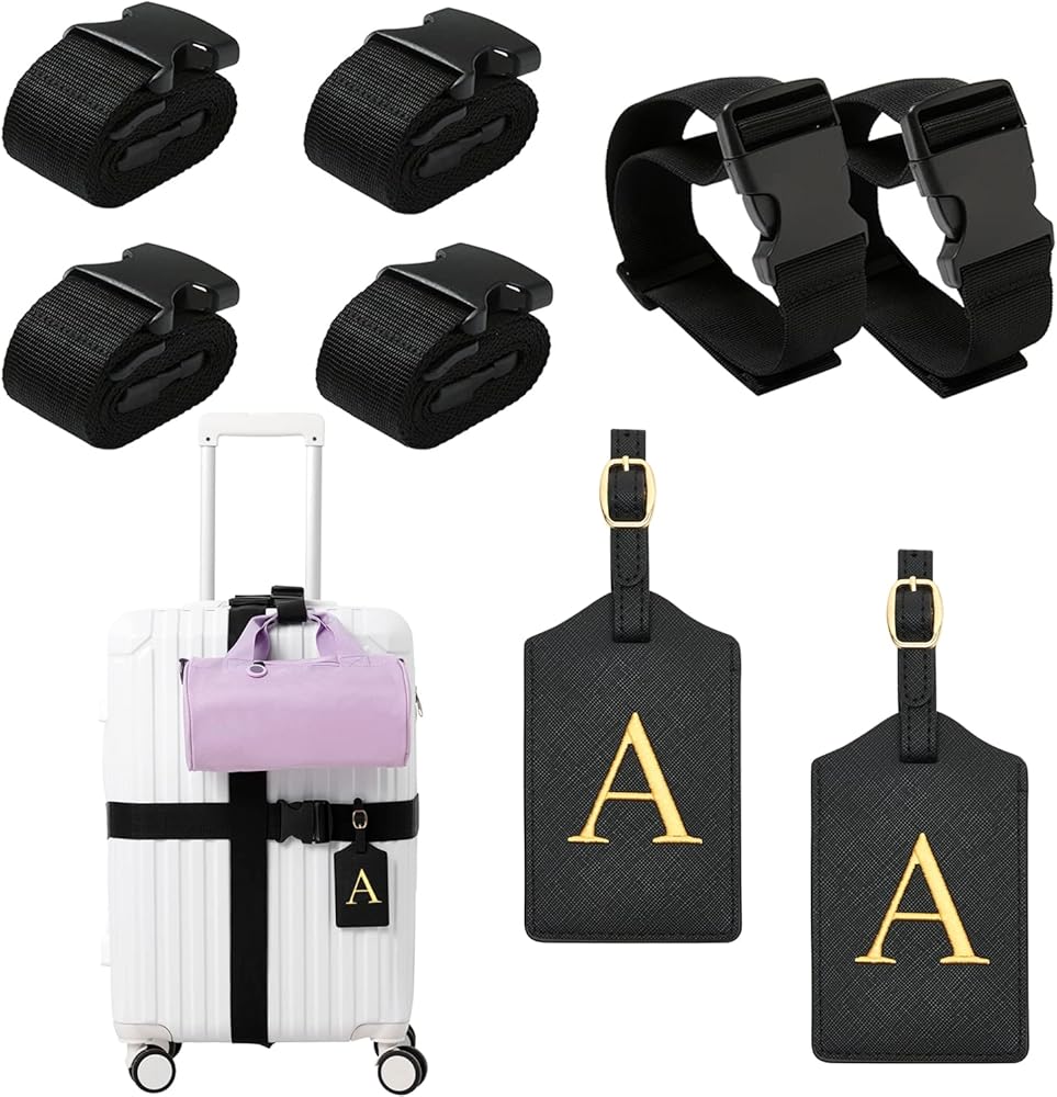 تتضمن العبوة - سوف تحصل على 4 قطع من أحزمة الأمتعة الطويلة، وقطعتين من أحزمة الأمتعة القصيرة، وقطعتين من بطاقات الأمتعة الأولية.