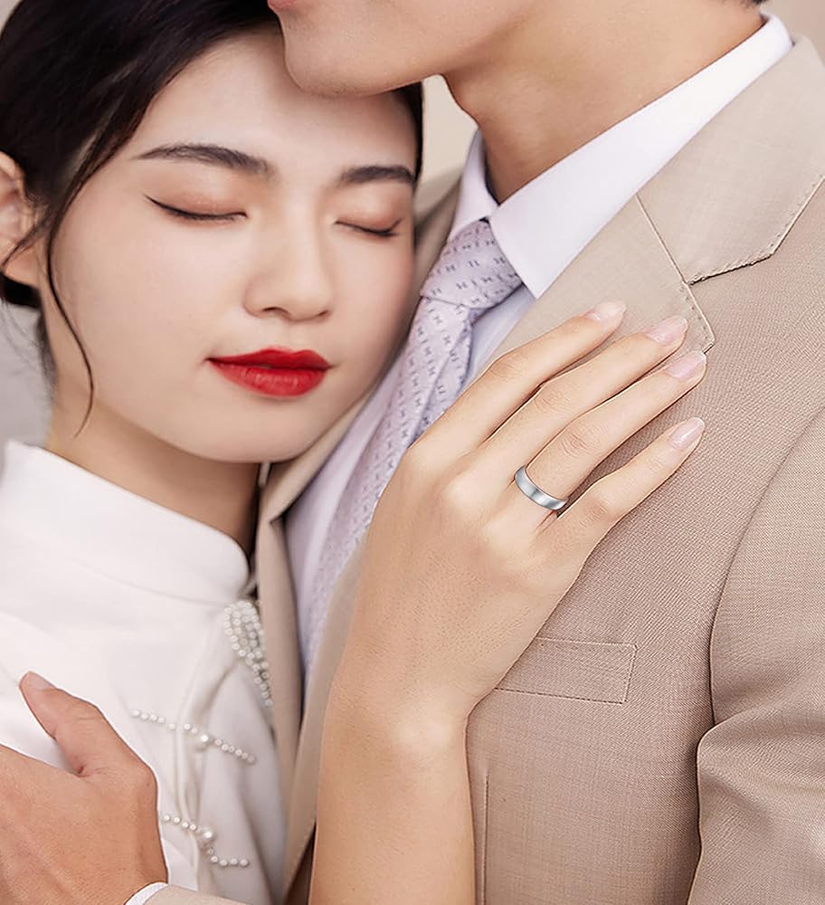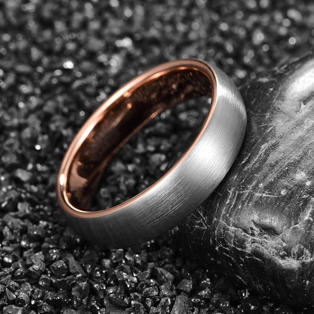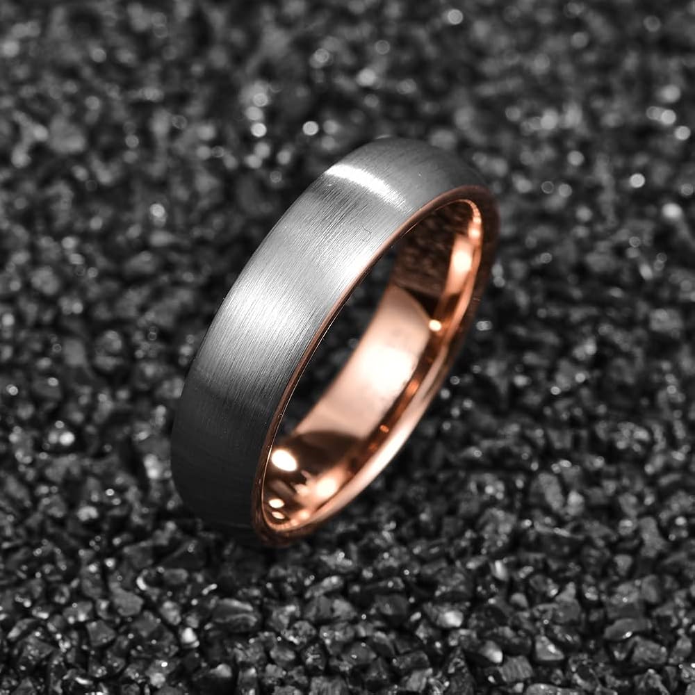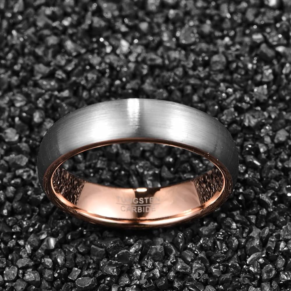 تصميم أنيق: خاتم زفاف من التنجستين مع سطح فضي غير لامع ووجه داخلي ناعم عالي اللمعان باللون الذهبي الوردي، يمنحك تجربة ارتداء مريحة. تناسب كلا من الرجال والنساء.