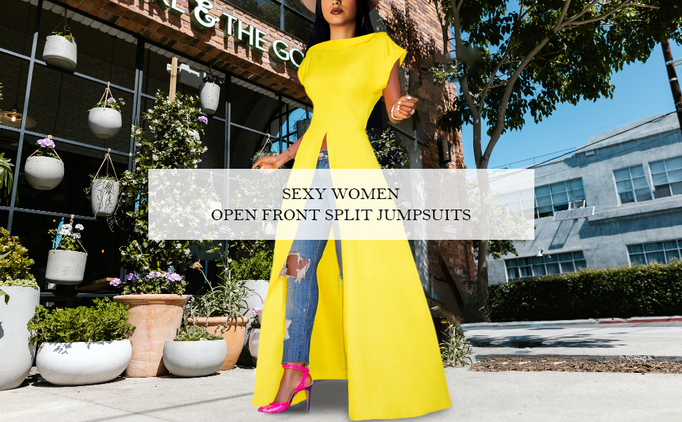 بدلة قفز نسائية كاجوال من VOIKERDR بأكمام قصيرة من Ncek ومفتوحة من الأمام ومقسمة بأرجل واسعة