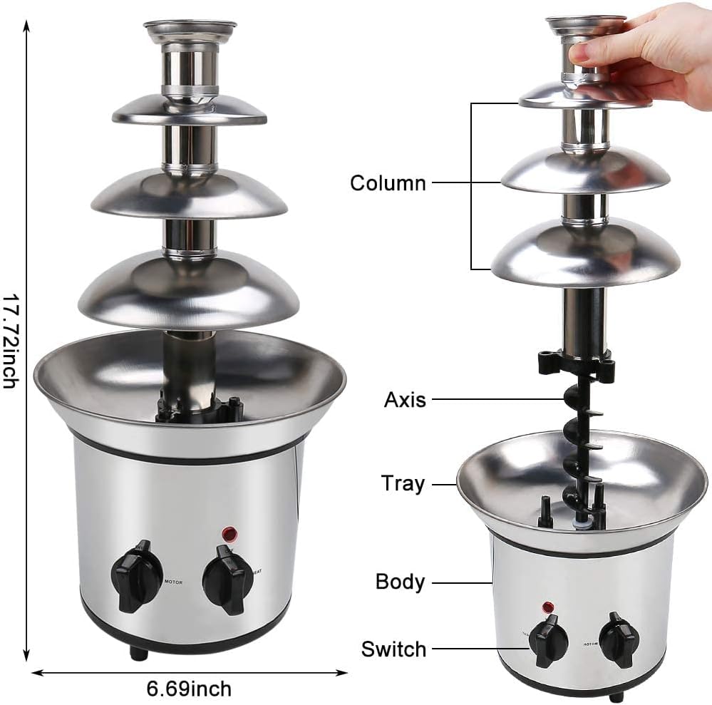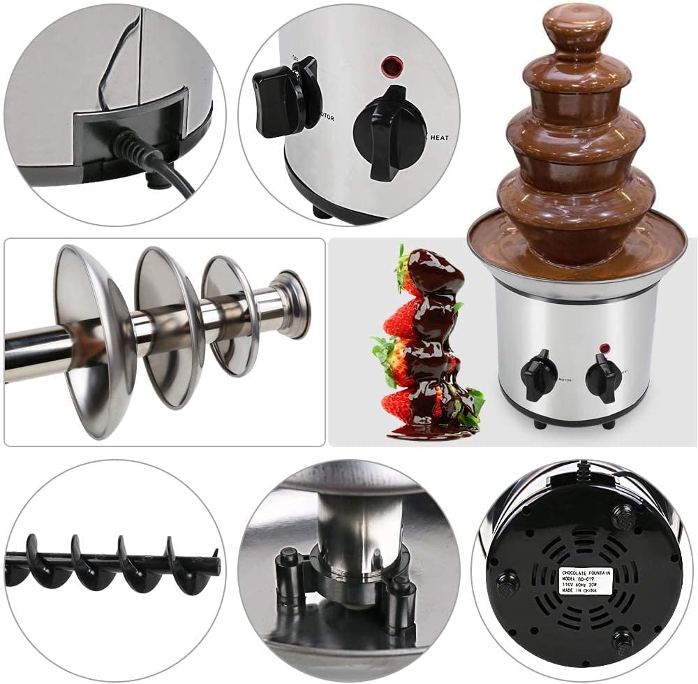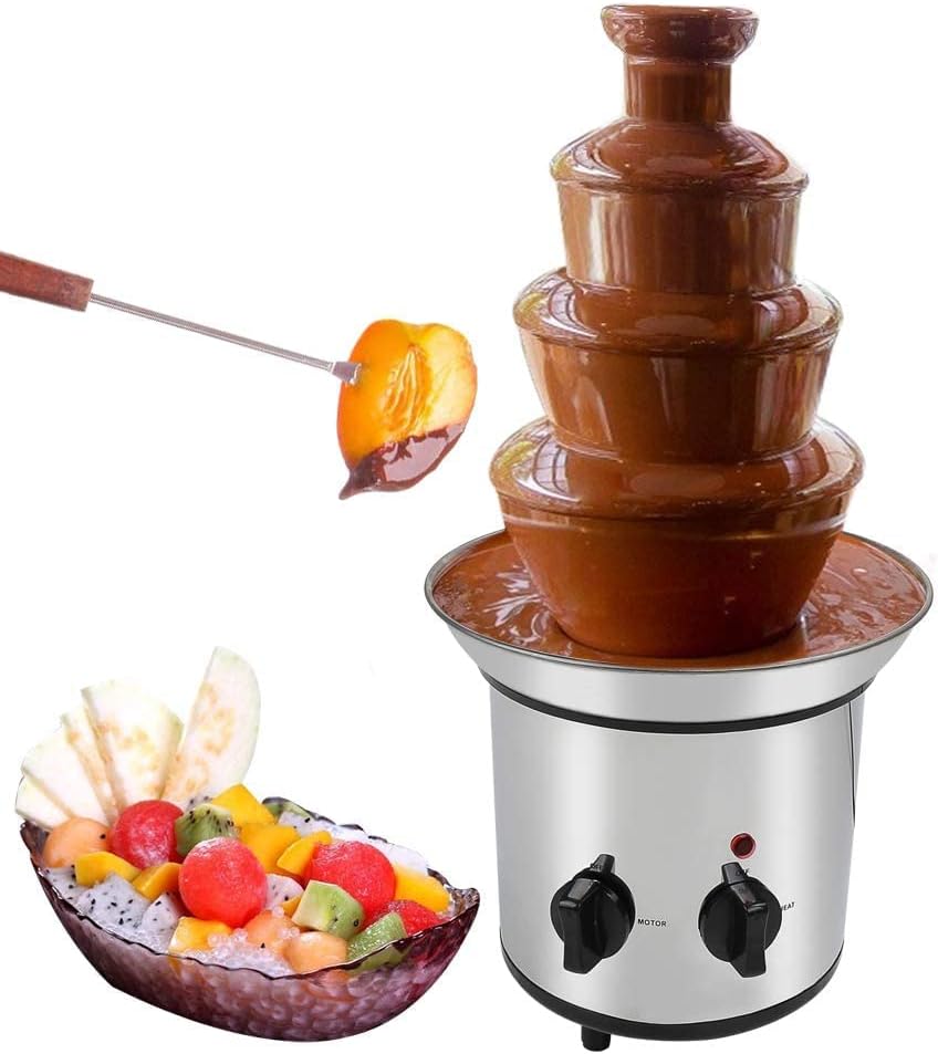 متعة الفوندو: نافورة شوكولاتة من 4 طبقات بسعة 2 باوند يمكن أن تخدم 20 ضيفًا في الحفلات، ومناسبة لحفلات أعياد الميلاد والتجمعات العائلية وحفلات الزفاف والتخرج. استمتع بالفراولة والكرز والمارشميلو والموز وما إلى ذلك.