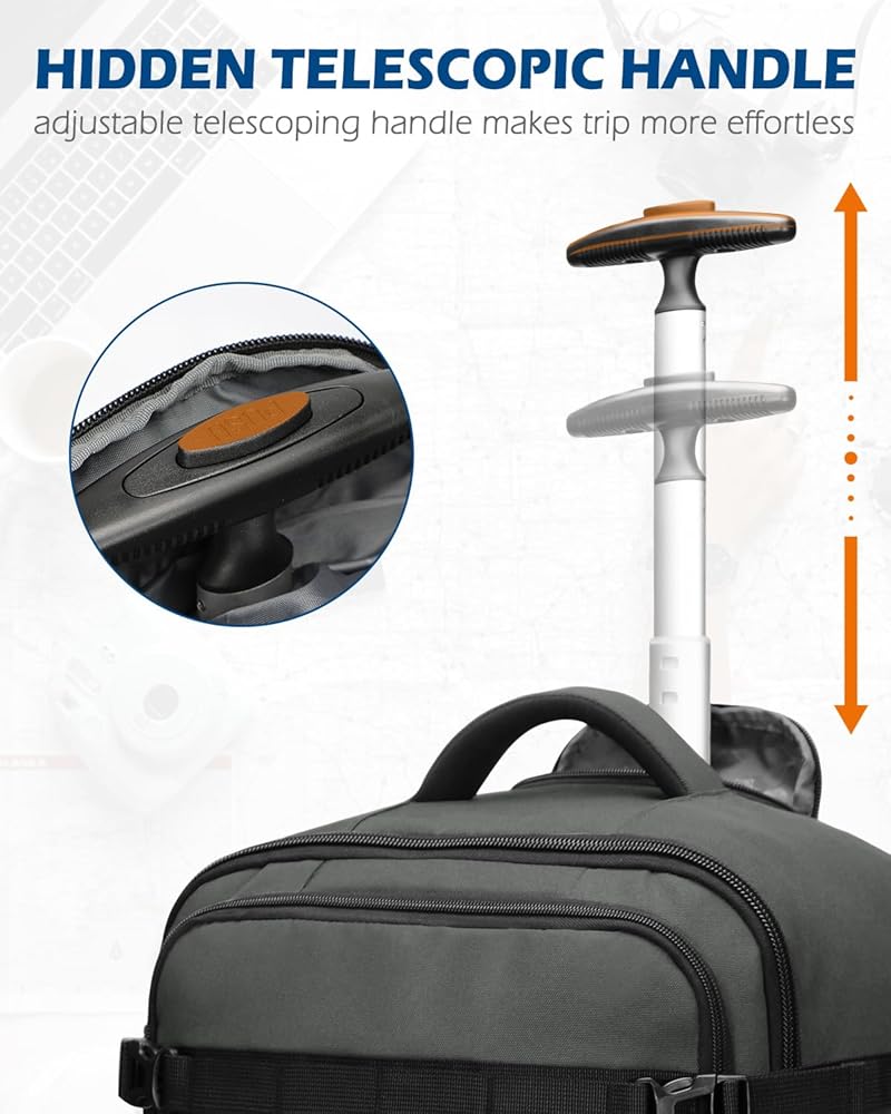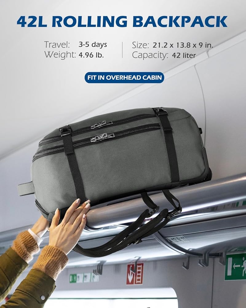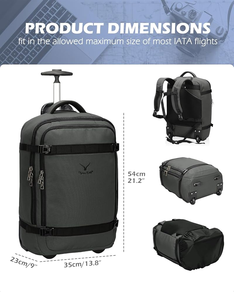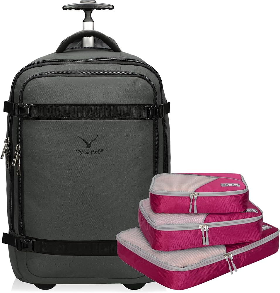 Hynes Eagle Rolling Backpack 42L Backpack with Wheels Airline Approved Carry on Luggage Laptop Travel Backpack for Women Men Grey-2023 Hynes Eagle 3 Pieces Packing Cubes Set Travel Luggage Organizer Bag Red Violet