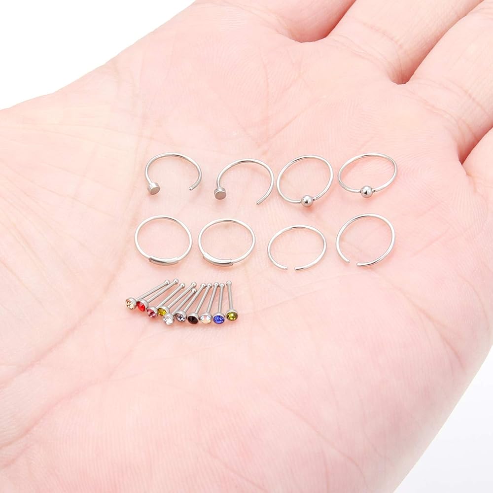 Including 78PCS 22 Gauge Nose Rings Which Contains 18PCS Nose Hoop Rings and 60PCS Nose Studs. Reasonable Price For Body Jewelry,Deserve To Purchase.