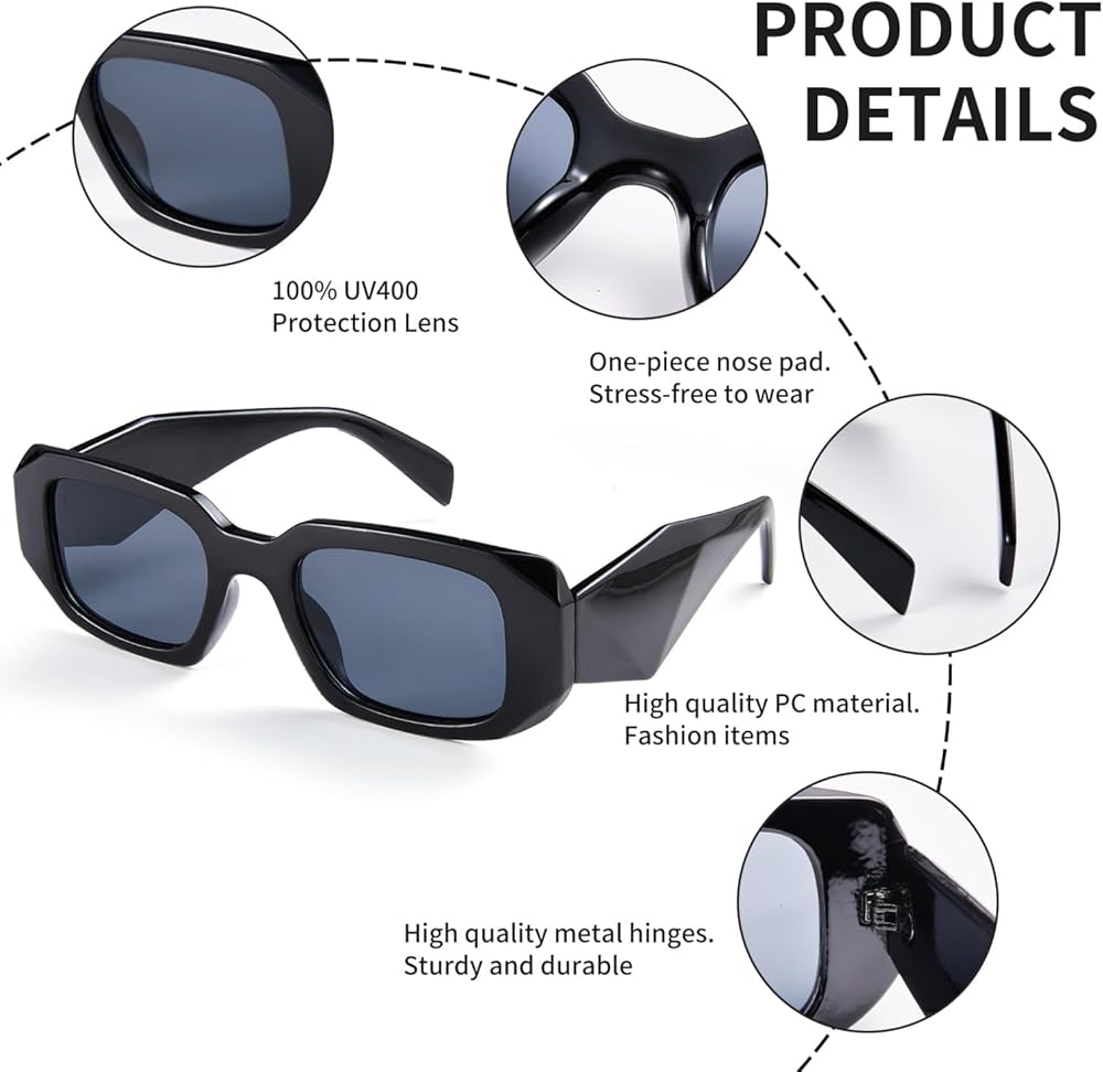 تصميم كلاسيكي - أحدث طراز XYSRXWY المستطيل لدينا هو أيضًا الأكثر أناقة لدينا، وتتميز هذه النظارات الشمسية بأذرع سميكة ومعززة، والإطار المستطيل السميك يجعل المظهر العام للنظارات الشمسية أكثر رجعية.