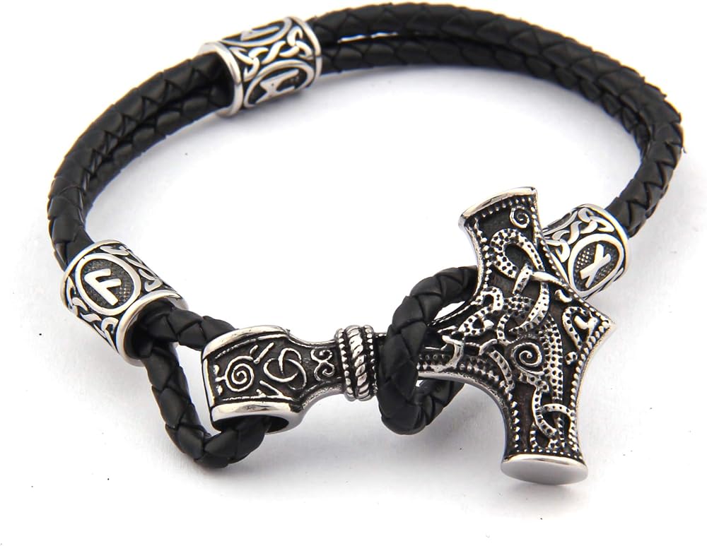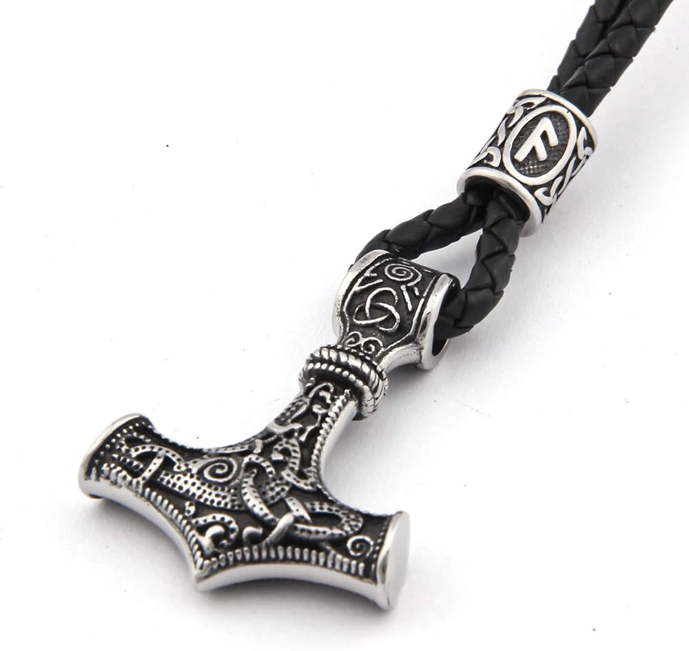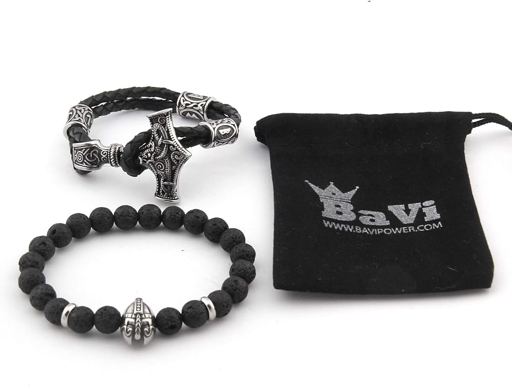 قلادة THOR HAMMER: مستوحاة من طراز Mammen، تقدم BaviPower قطعة من قلادة Viking تتميز بمطرقة Thor بنمط Mammen. يُنظر إلى الحافة المنحوتة والمصقولة جيدًا لسوار Mjolnir على أنها سمات تسمح لها بأن تكون فريدة من نوعها.
