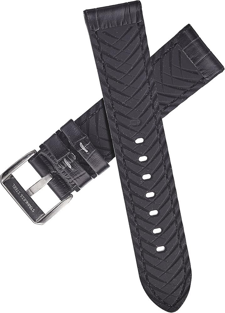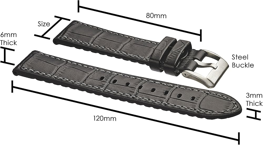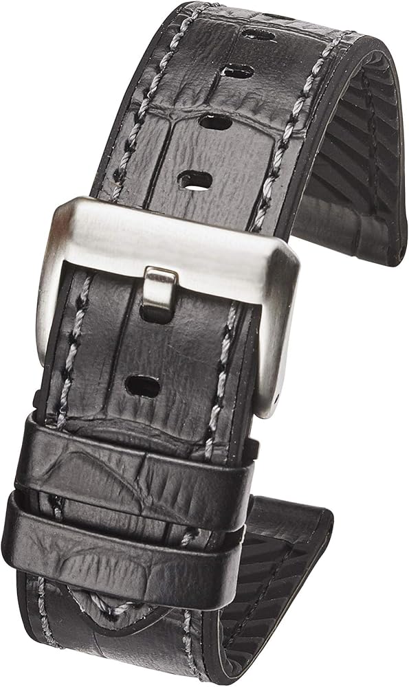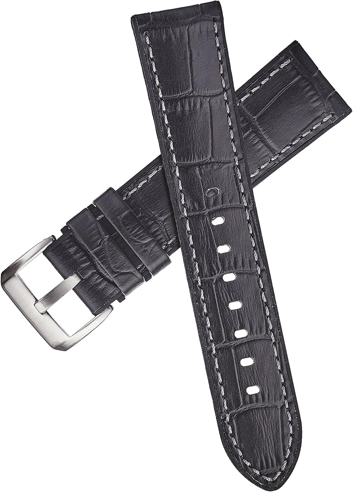 سوار ساعة ألبين من جلد التمساح الأصلي مع بطانة سيليكون - أسود - 20 ملم، 22 ملم، 24 ملم