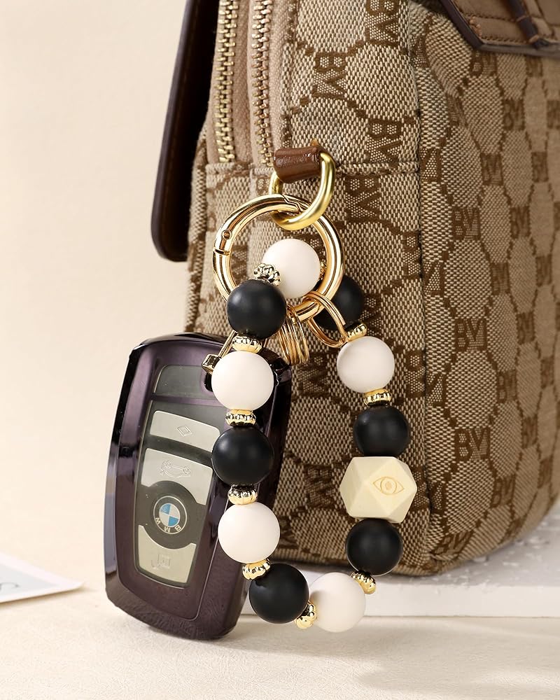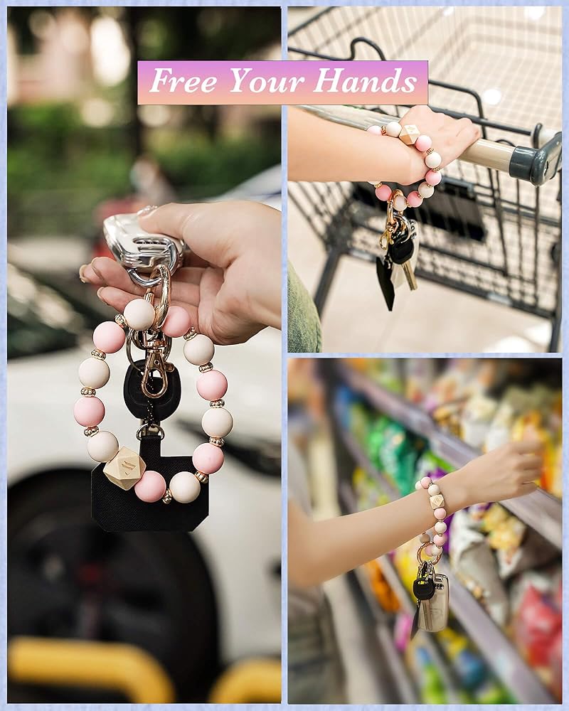 𝑺𝒕𝒚𝒍𝒊𝒔𝒉 𝑼𝒕𝒊𝒍𝒊𝒕𝒚 - This silicone bead key fob keychain combines style and practicality. It includes an elegant jewelry box, a key ring bracelet, a detachable spring clasp, a swivel lobster clasp, a phone tether tab, and three separate key rings. Its variety of colors makes it an excellent accessory to complement any outfit.