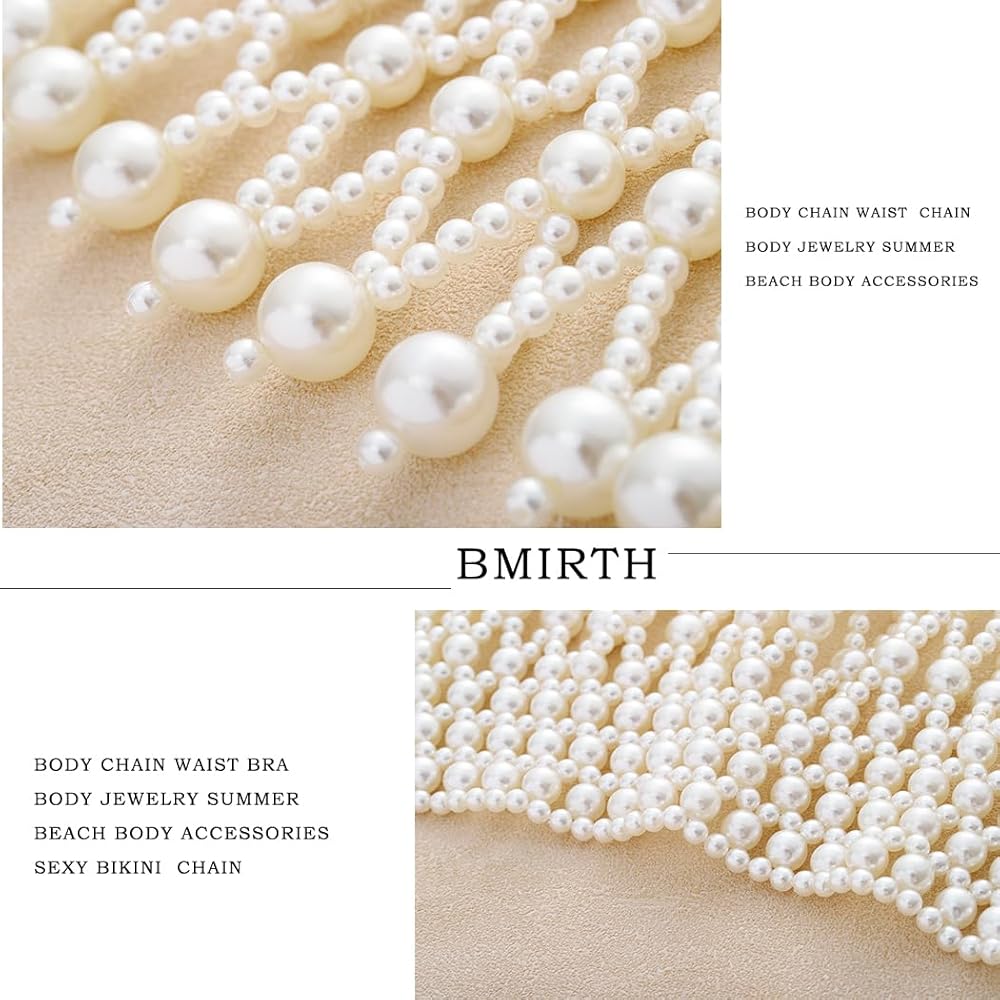 Bmirth لؤلؤة شال الجسم سلسلة اللؤلؤ الكتف القلائد مجوهرات الجسم الصيف شاطئ الجسم اكسسوارات صحن سلاسل الجسم الطرف
