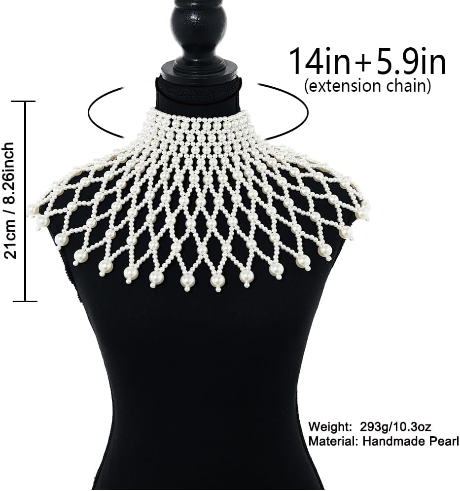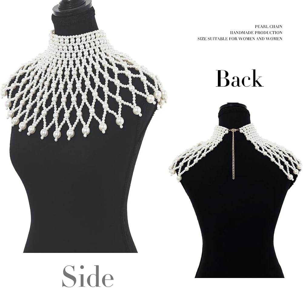 • سلسلة الجسم قلادة الشال مصنوعة يدوياً من اللؤلؤ الأبيض، وحجمها يناسب النساء جيداً، ويمكن تعديلها بشكل مناسب مع السلسلة الممتدة، يمكنك ضبط القلادة والصدر حسب تفضيلاتك. لذلك لا تقلق بشأن طول