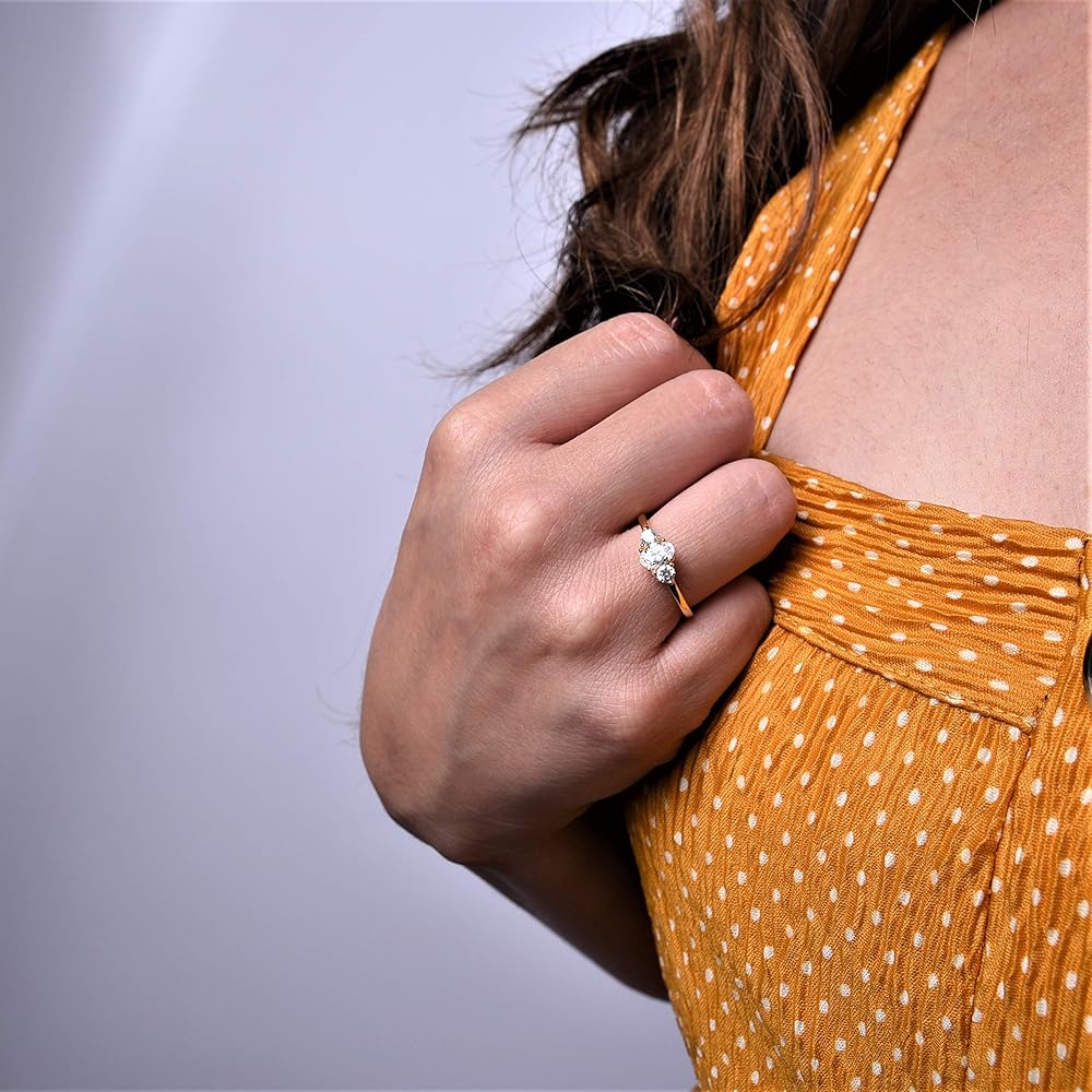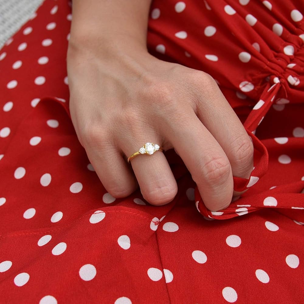 تتميز هذه الحلقة الرقيقة المكونة من ثلاثة أحجار بحجر تشيكوسلوفاكيا بيضاوي الشكل بأعلى درجة 6 × 4 مم (أي 0.5 قيراط) في إطار كلاسيكي مكون من ثلاثة أحجار وأربعة شوكات. خاتم رقيق بسيط وحلو لدرجة أنه من الصعب مقاومته. خاتم خطوبة رائع للفتاة الكلاسيكية.
