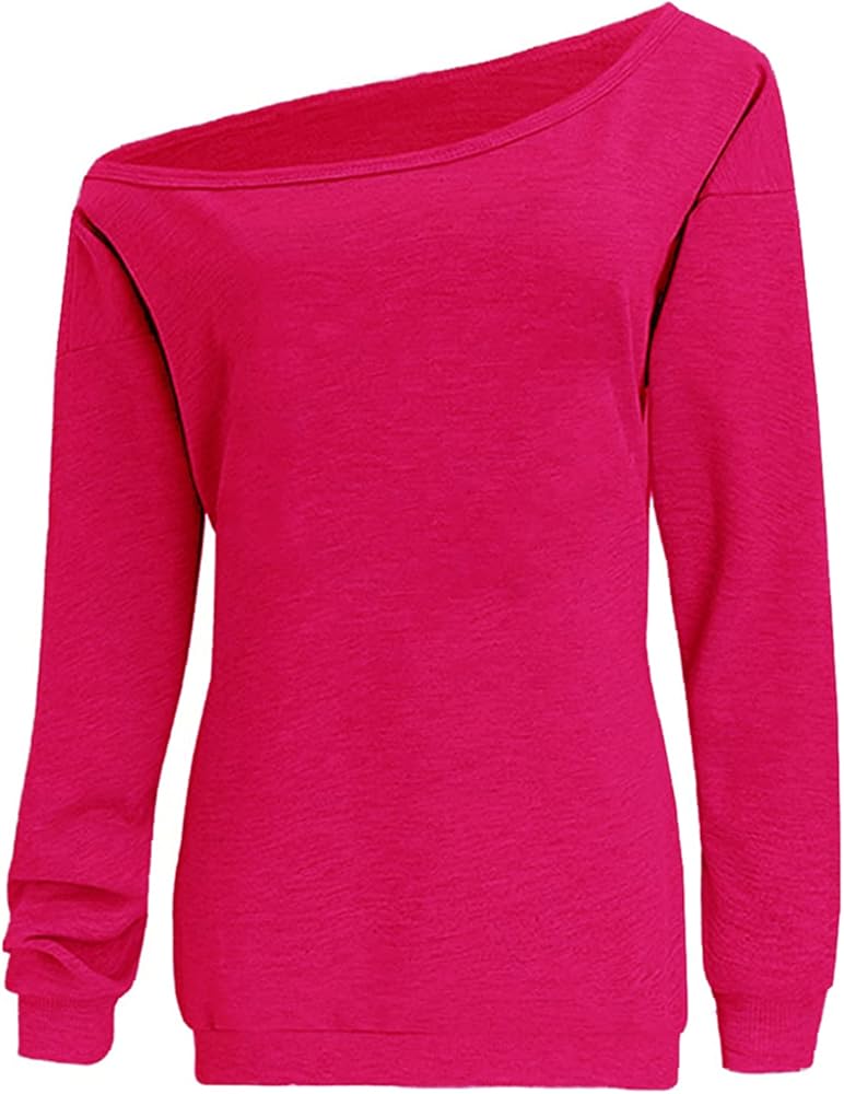 قميص بلوفر بلون موحد، رقبة واسعة، أكمام طويلة، سويت شيرت فضفاض، بدون أكتاف، مقاس مريح، خفيف الوزن، طراز كاجوال، فضفاض فضفاض بكتف واحد وأكمام قصيرة.