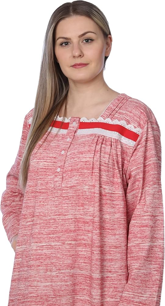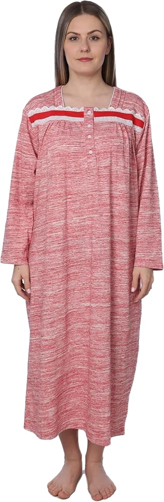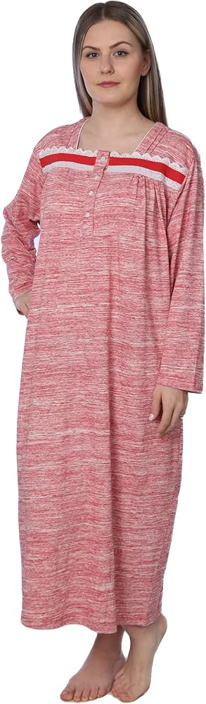قميص نوم نسائي طويل من الجيرسيه بأكمام طويلة، فستان فضفاض أنيق