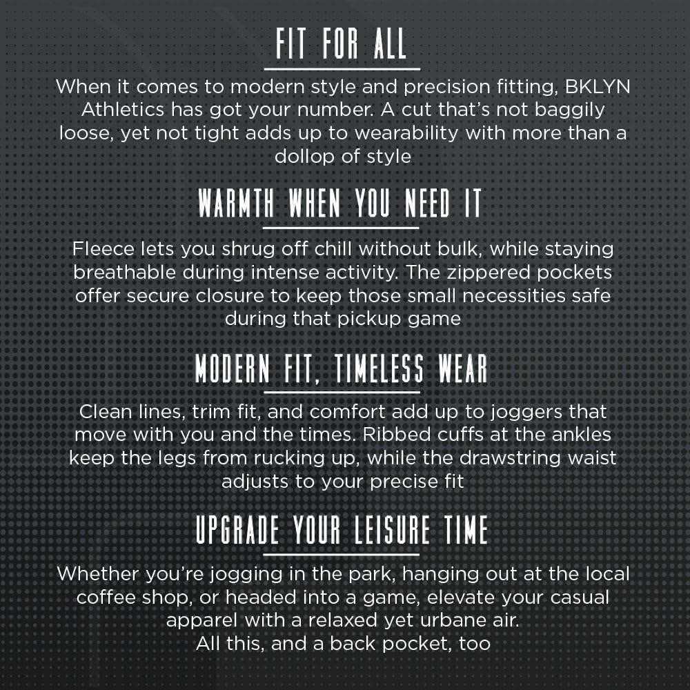 BROOKLYN ATHLETICS apparel draws inspiration from the East Coast surf and skate scenes. Clothing designed for individuals whose lifestyles are active, functional and adventurous. Designs feature modern and innovative details that appeal to everyone. Soft fleece, ribbed cuffs and adjustable drawcord provide added comfort. Sizing is designed for a slim/athletic fit. We recommend ordering a size larger for a looser fit. Model shown is 6'1" with an athletic build wearing a size medium. Features two side zipper pockets, one back zipper pocket, elastic waistband. Jogger pants are tapered style sweatpants designed to have a slim/skinny fit compared to loose fit sweatpants. Leg cuffs fall just above the ankle. Great for all seasons. Perfect for casual wear, exercise, active sports, lounging around the house or everyday use. Available in your favorite colors in regular, big and tall sizes. (S to 4XL ) See size chart to compare measurements and choose your fit. Midweight fleece blend gives these pants a soft and comfortable feel in a stylish fit. Made from 60% Cotton and 40% Polyester. We stand by the quality of our apparel and includes no hassle 100% money back guarantee if not satisfied. The fleece fabric provides a comfortable and stylish fit for year round wear. These fleece jogger pants for men are available in a variety of colors and sizes, so you can definitely find a pair that you'll love. Colors Available: Olive, Solid Black, Black Marl Gray, Onyx Marl Black, Olive Camo, Gray Camo, Black Snow, Black Streaky. Sizes Available: Small, Medium, Large, X-Large, 2X-Large, 3X-Large, 4X-Large.