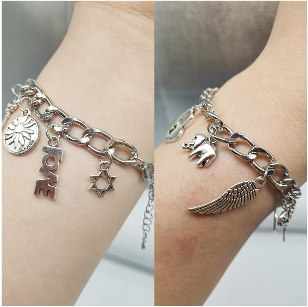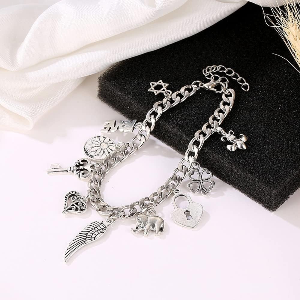 ❤[Material]:Sterling Silver Bracelets, S925 silver, stylish and simple, with 13 different small pendants, more stylish personality, Charm Bracelets for Women.Alloy Metal, 925 Silver Plated, Very Shiny and Popular, Match with Suitable Apparel for Different Occasion.