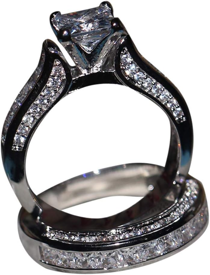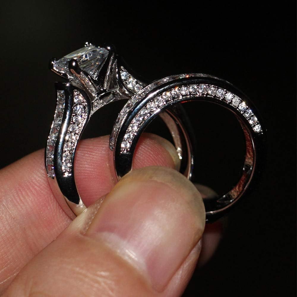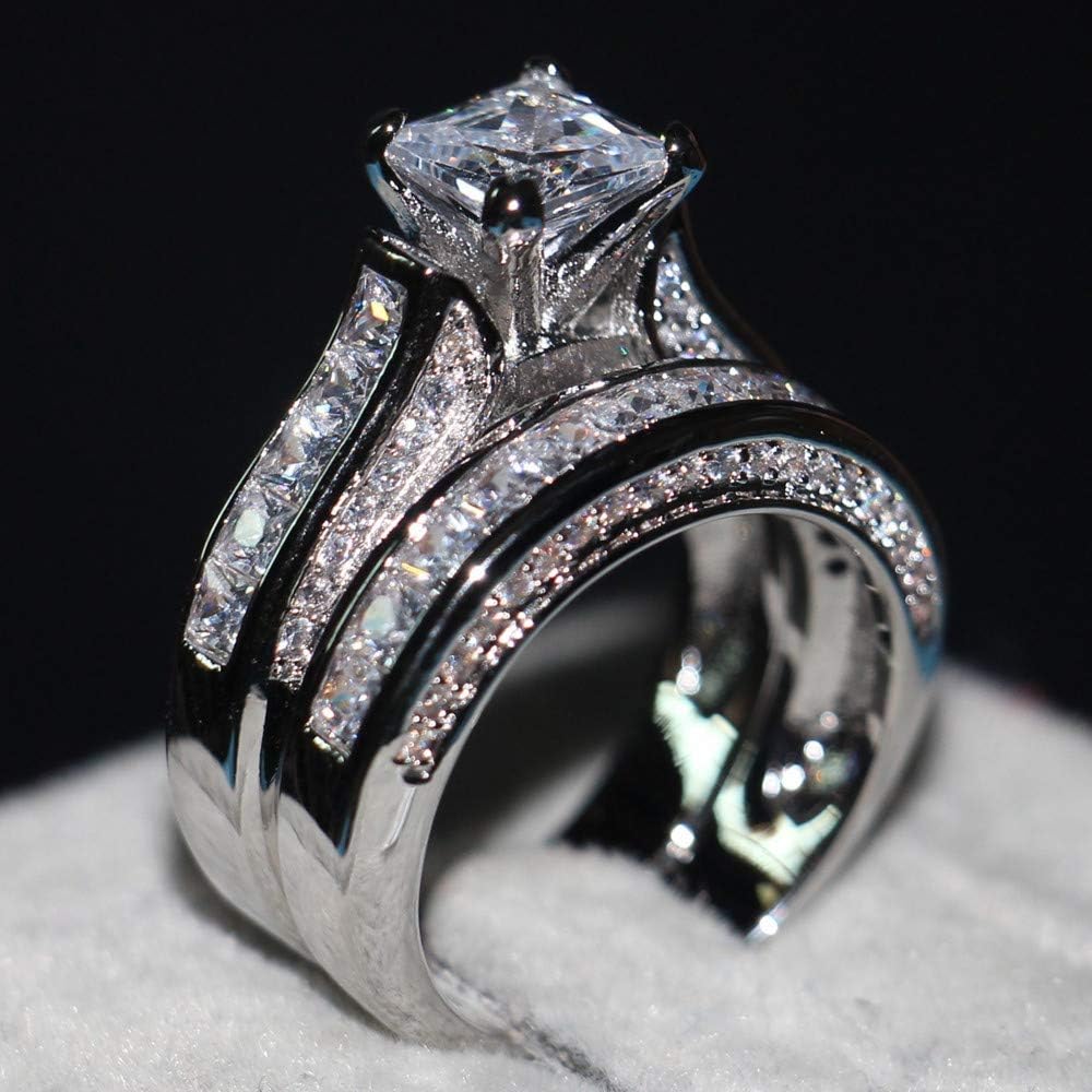 2-in-1 Womens Vintage White Diamond Silver Engagement Wedding Band Ring Set
