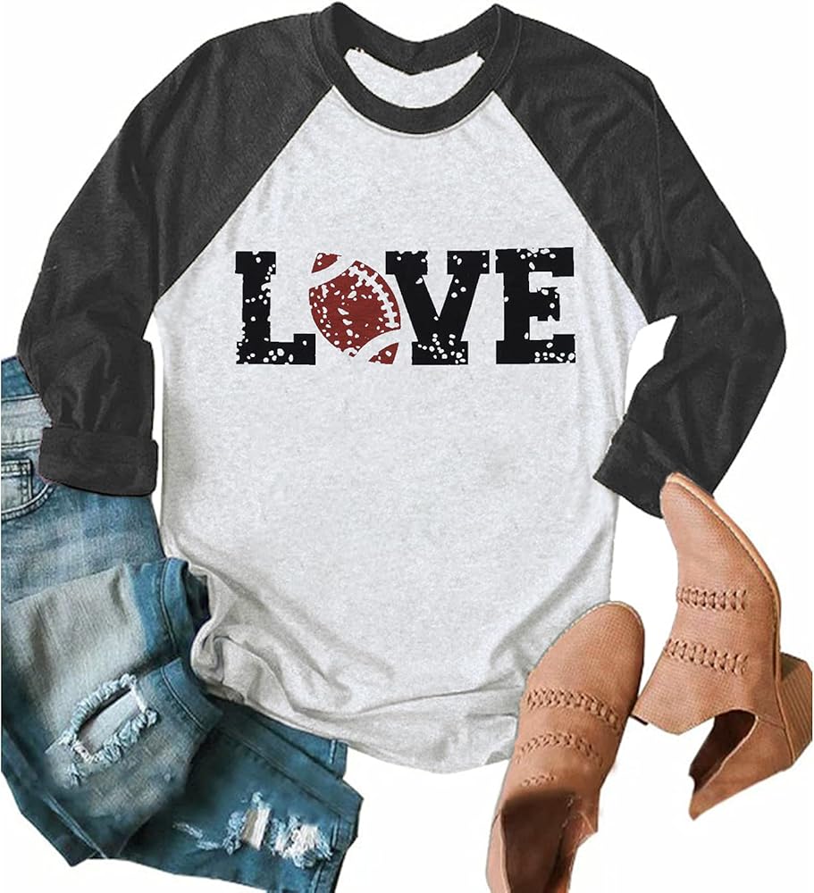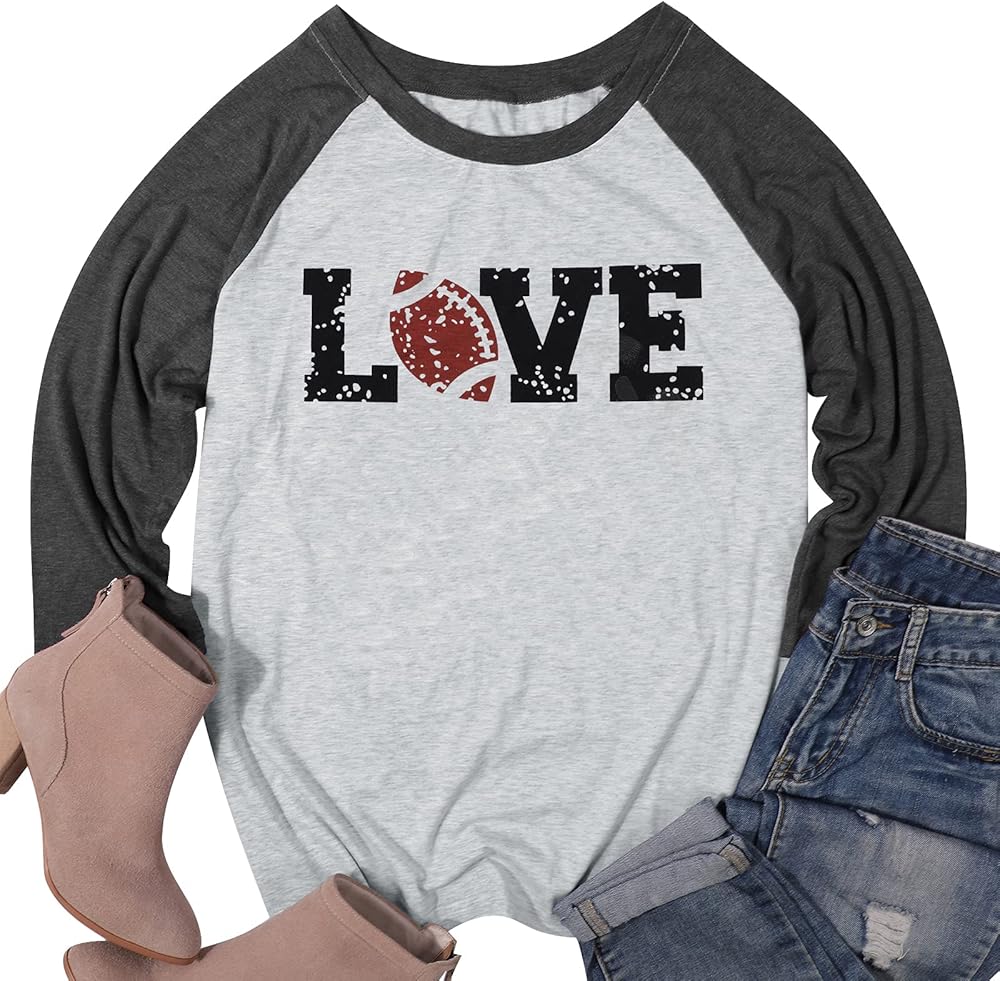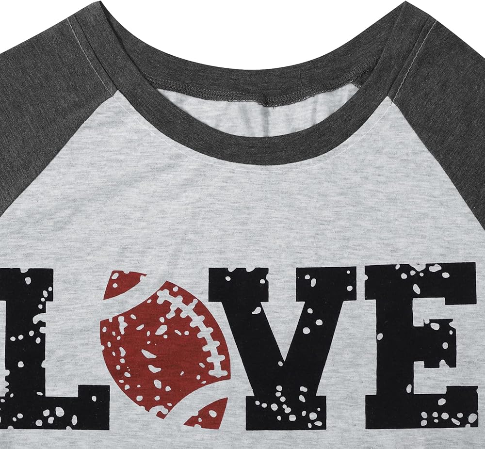 Women Football Love Shirts Raglan 3/4 Sleeve Football Game Day Tee Tops Blouse Gifts