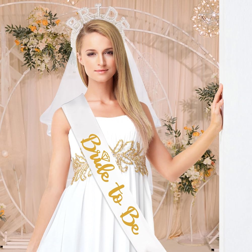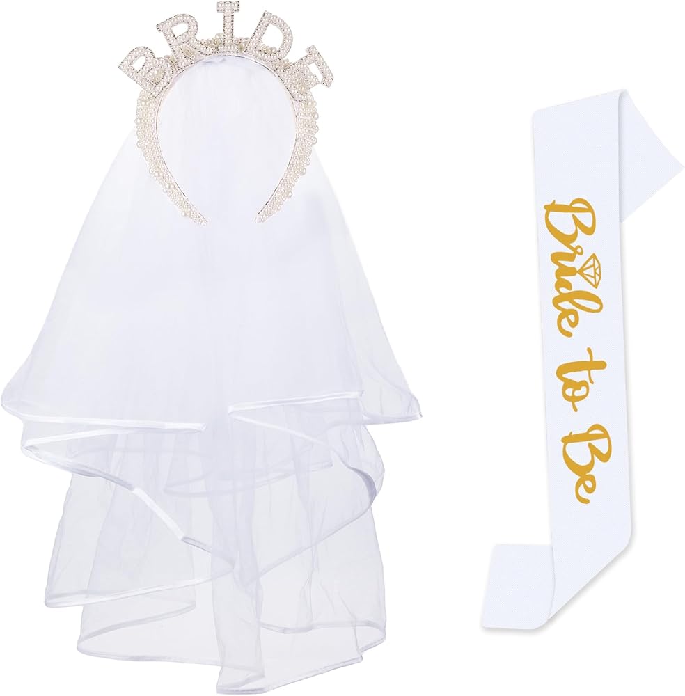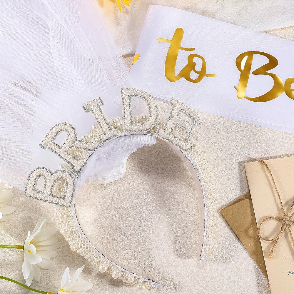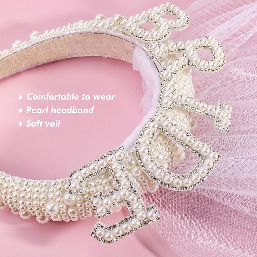 مجموعة حفلات توديع العزوبية للعروس: قطعة واحدة من شريط رأس اللؤلؤ مع وشاح وقطعة واحدة من وشاح [Bride to Be].