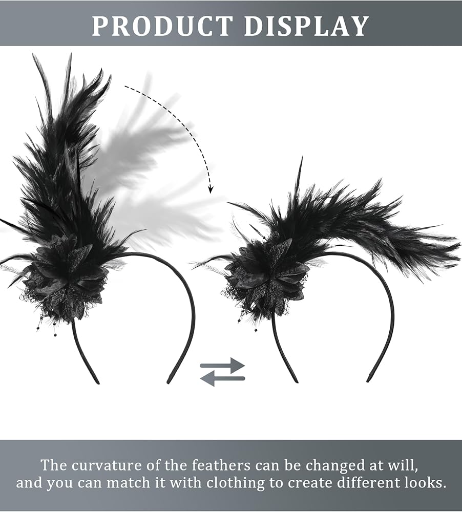 🎉【يمكن ثني الريش الرقيق عالي الجودة حسب الرغبة】 - ريش غطاء الرأس الرائع الخاص بنا رقيق جدًا ويرفرف عند تمديده بالكامل. يوجد سلك في منتصف الريشة، ويمكن تعديل الزاوية حسب الرغبة. يمكنك اختيار الزاوية التي ترغب في ارتدائها.