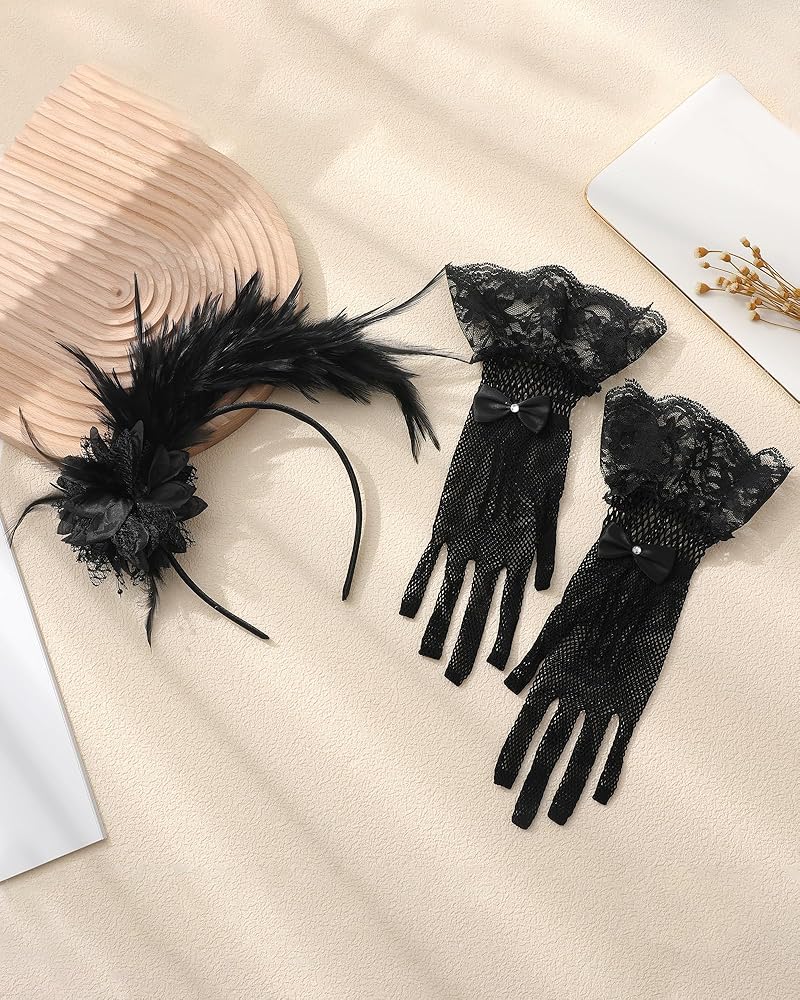 🎉【مجموعة واحدة تتضمن عصابة رأس وقفازات】 - مجموعتنا تأتي مع عصابة رأس وزوج من القفازات السوداء أو البيضاء، وهي مناسبة لك لارتدائها مع فساتين السهرة أو التنانير للمناسبات الخاصة، وتوفر لك الكثير من الوقت في البحث عن قفازات لتتناسب.
