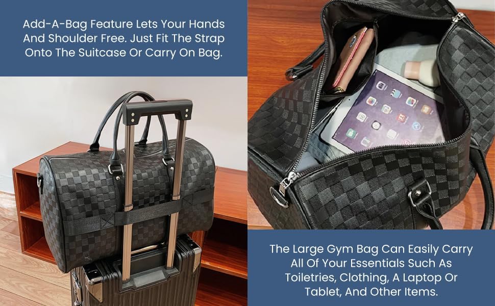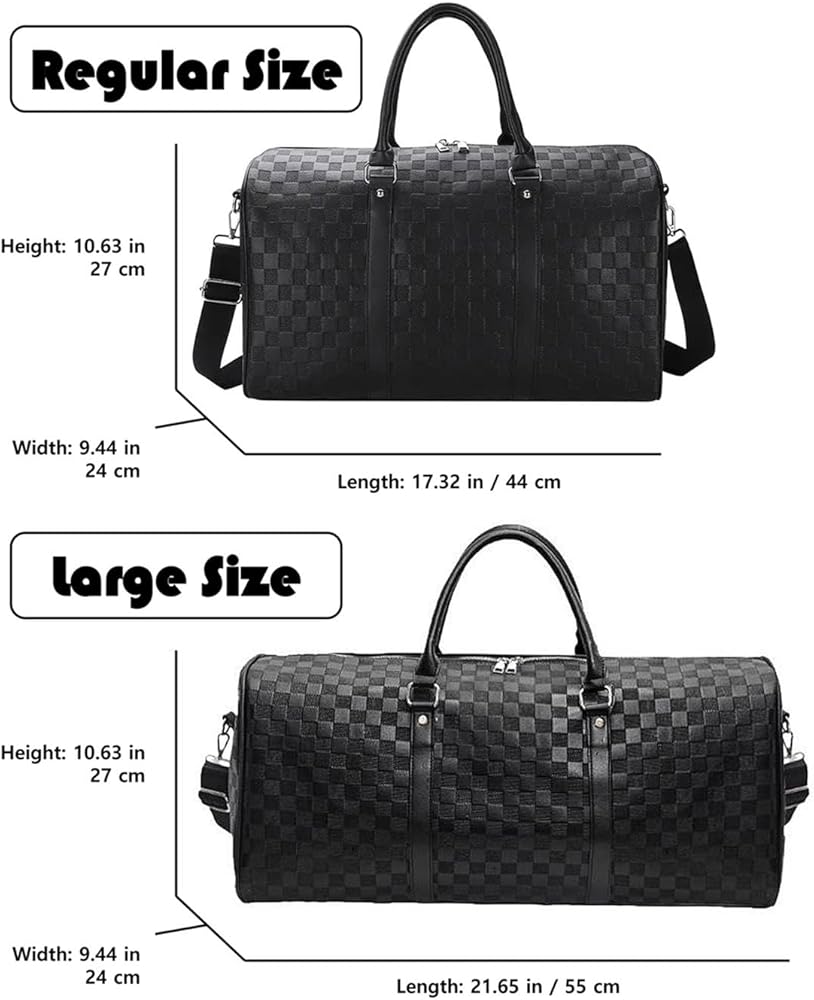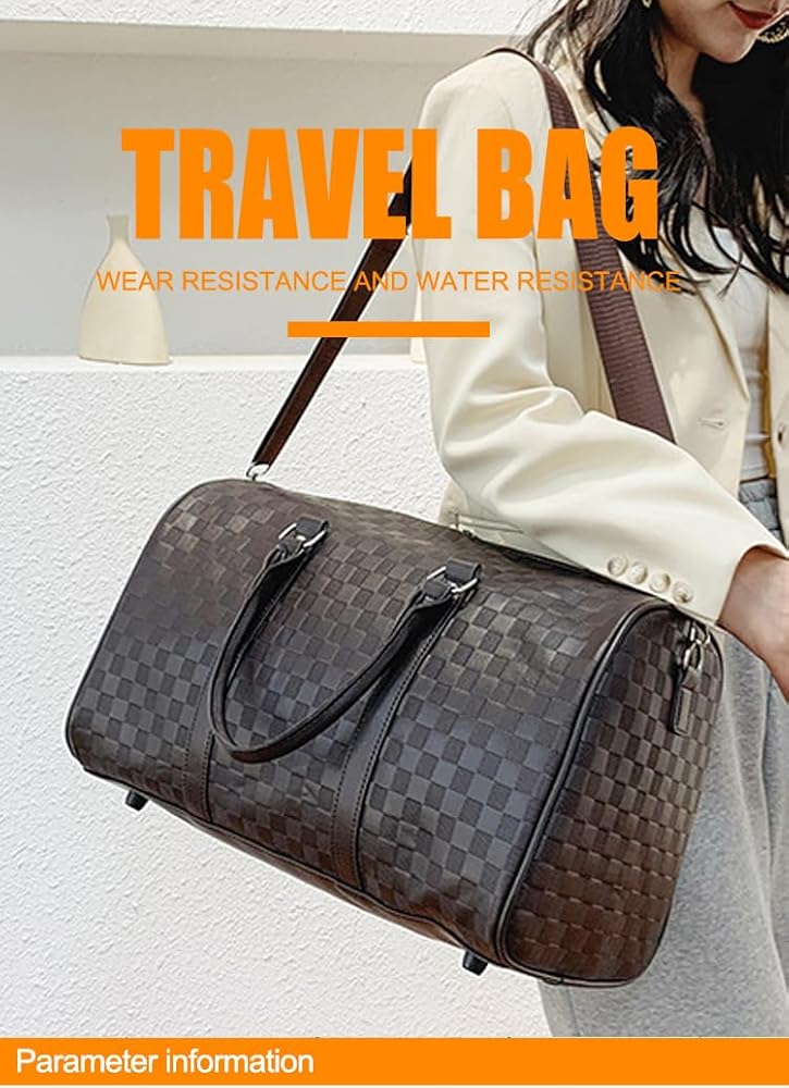 This geometric tote bag is made of high quality PU leather, lightweight and durable. With smooth zippers and reinforced stitching, this tote bag is strong and long-lasting, and easy to clean. This large capacity travel bag has one main zipped compartment, one zipped middle pocket and two open pockets inside, one zipped pocket on the back, and four pockets on the outside for easy storage of your wallet, mobile phone, power bank, cosmetics, umbrella, water bottle, etc. This tote bag can be used as a travel bag, shopping bag, beach bag, gym bag, diaper bag, etc. Perfect for travel, shopping and daily use. Please note that the actual color of the bag may be slightly different from the image shown on the screen due to different lighting and screen settings. Are you looking for a stylish and reliable bag to take on your travels? This Duffel Bag Gym Bag for Women & Men is the perfect solution! Whether you're headed out for the weekend or on an international excursion, this travel weekender tote duffle bag will get you where you're going with ease. With an adjustable carry on strap, this duffel bag allows you to conveniently slide it over any wheeled luggage, or strap it onto the handlebar. The large gym bag can easily carry all of your essentials such as toiletries, clothing, a laptop or tablet, and other items. Crafted from sturdy and waterproof materials with multiple pockets inside and out, this weekender bag offers plenty of room without sacrificing style. Featuring beautifully crafted details like gold metal zippers and polished accents, this travel bag is the epitome of sophistication. Womens gym bags won't be complete without a fashionable pattern or color--take your pick between timeless stripes and subtle colors. Packed with versatility and style that lasts forever, this Duffel Gym Bag is the ideal addition to your suitcase collection! Dont forget about the leather duffle bags for men that are also available in our shop--a timeless choice for those who are constantly traveling. Whether used as a flight overnight bag or an everyday tote bag, these luggage bags offer dependable quality and convenience at all times! Buy now and make sure you never have to leave anything behind when packing again!