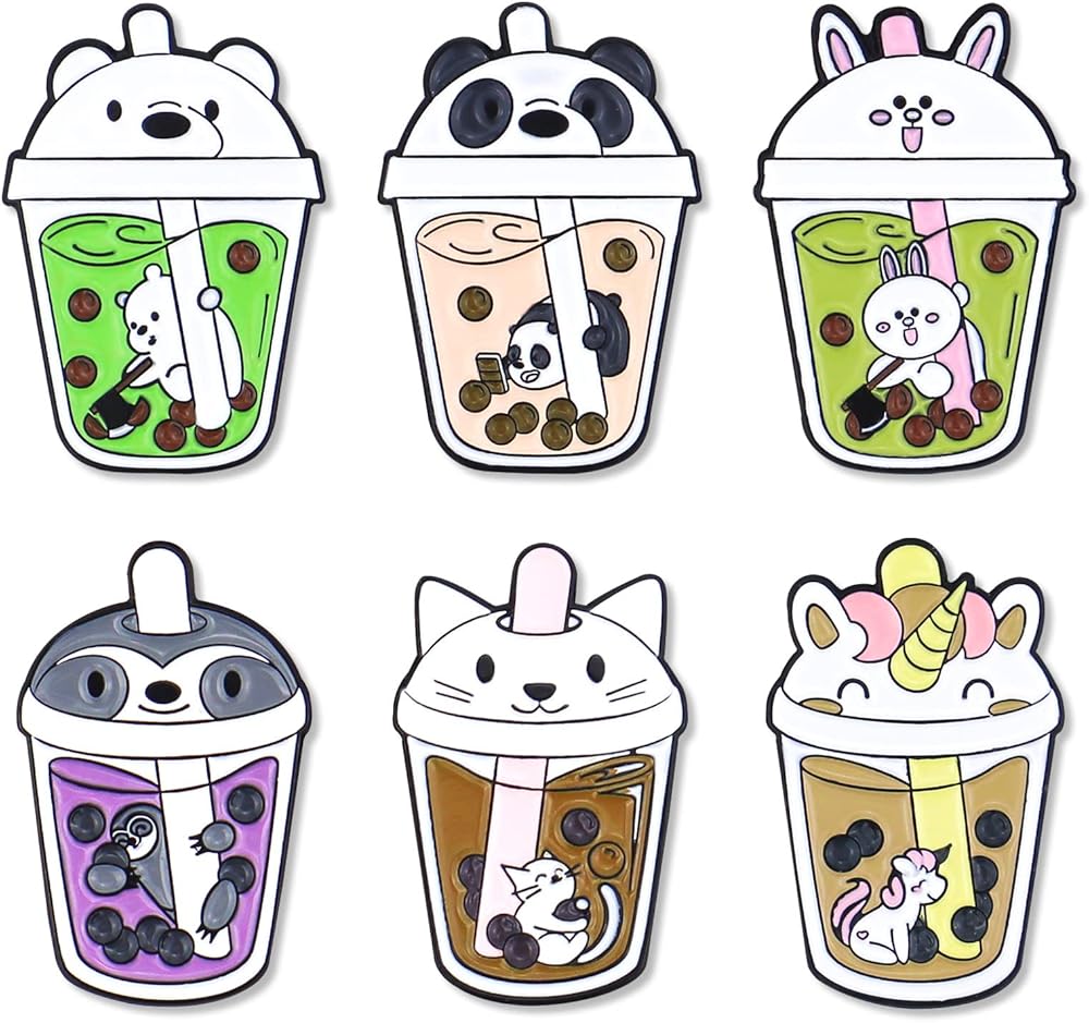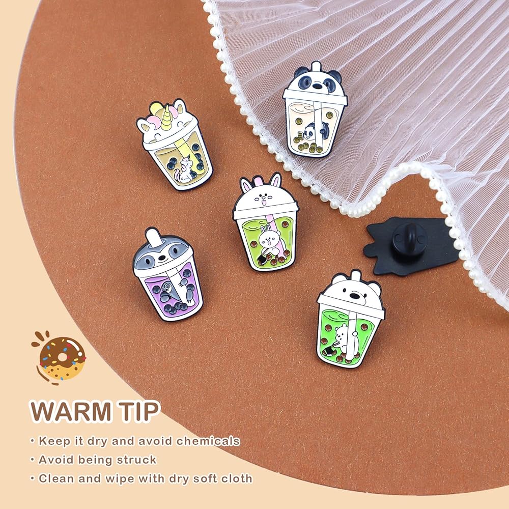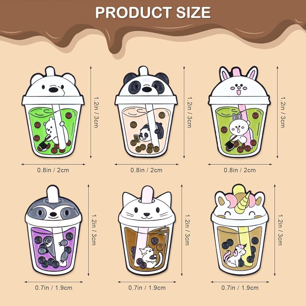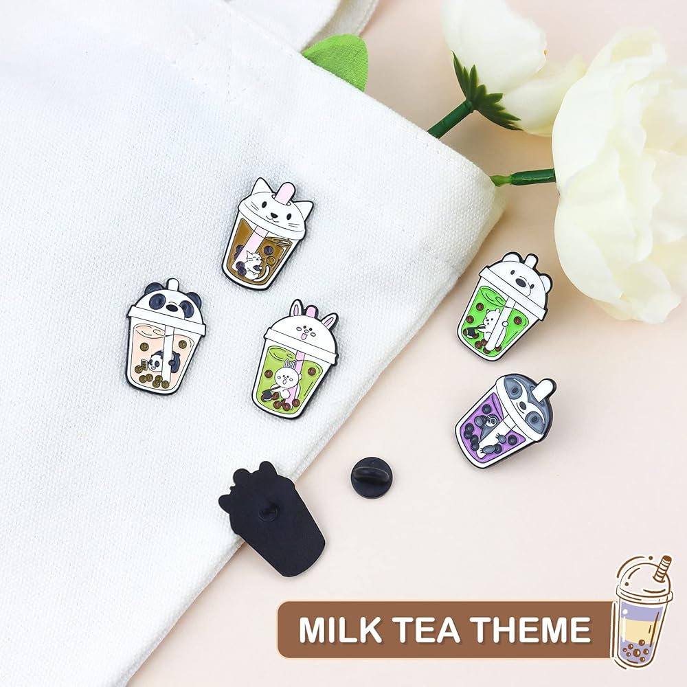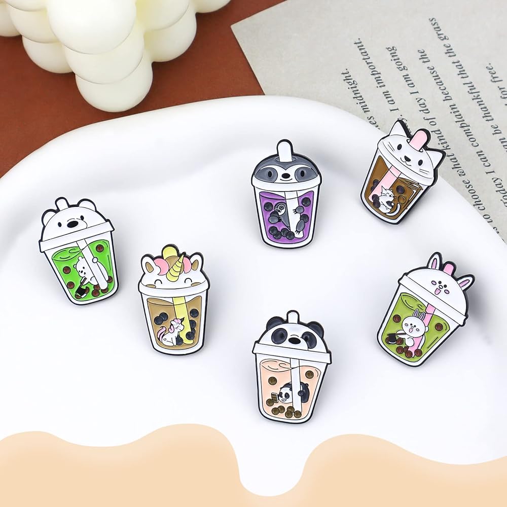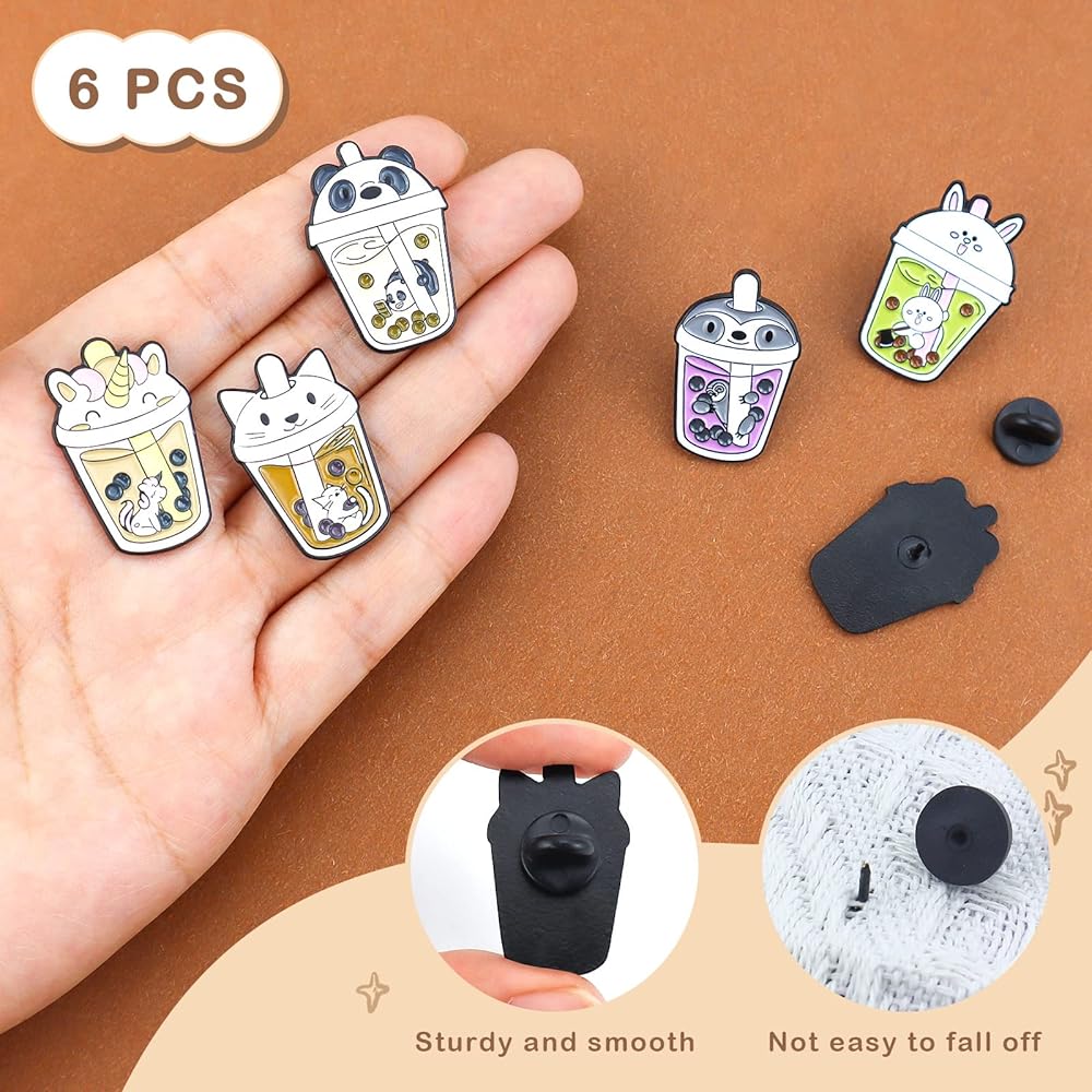 6 قطع دبابيس بروش لطيفة على شكل حيوان لؤلؤي بالحليب والشاي، دبابيس مطلية بالمينا بتصميم شخصية مضحكة، مجموعة مجوهرات، حقائب ملابس، اكسسوارات جاكيتات للرجال والنساء