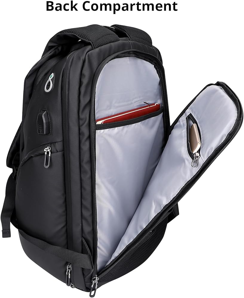 جيوب متعددة وسعة كبيرة: تبلغ سعة حقيبة الظهر هذه 36 لترًا. الخارجية: 1 حجرة رئيسية، 1 حجرة كمبيوتر، 1 جيب أمامي بسحاب، 2 جيب مضاد للسرقة في الخلف، 2 جيب جانبي بسحاب. داخلي: 1 جيب شبكي، 4 جيوب مفتوحة وجيب بسحاب مقاوم للماء في الحجرة الرئيسية. 2 جيوب مفتوحة، 1 جيب بسحاب، وجيب كمبيوتر مقاس 17 بوصة مع أشرطة تثبيت متقاطعة وجيب iPad واحد داخل حجرة الكمبيوتر. 1 جيب بسحاب، وجيب واحد مفتوح داخل الجيب الخلفي .