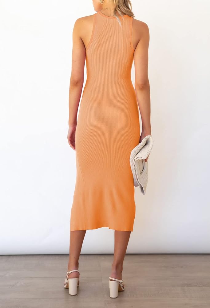 - فستان بدون أكمام بدون أكمام مصنوع من نسيج محبوك ناعم وقابل للتمدد، صديق للبشرة ومريح