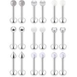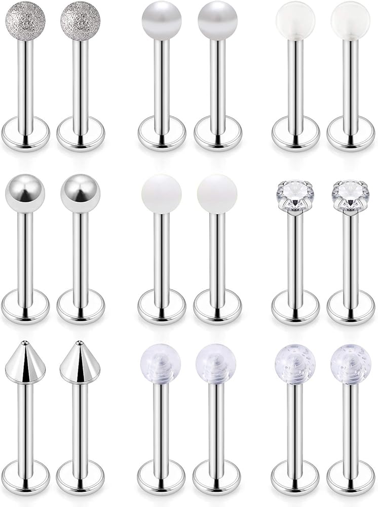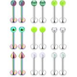 • Including 9PRS(18PCS) 14G Cheek Piercing Jewelry In 9 Styles(Solid Color Balls,Glow in Dark Balls,Gilitter Balls,Pearl,Clear Acrylic,Clear CZ Prong-setting,Shinny Balls,Matte Balls,Spike,Each Style One Pair), also Perfect for Tongue Rings Piercing Jewelry.