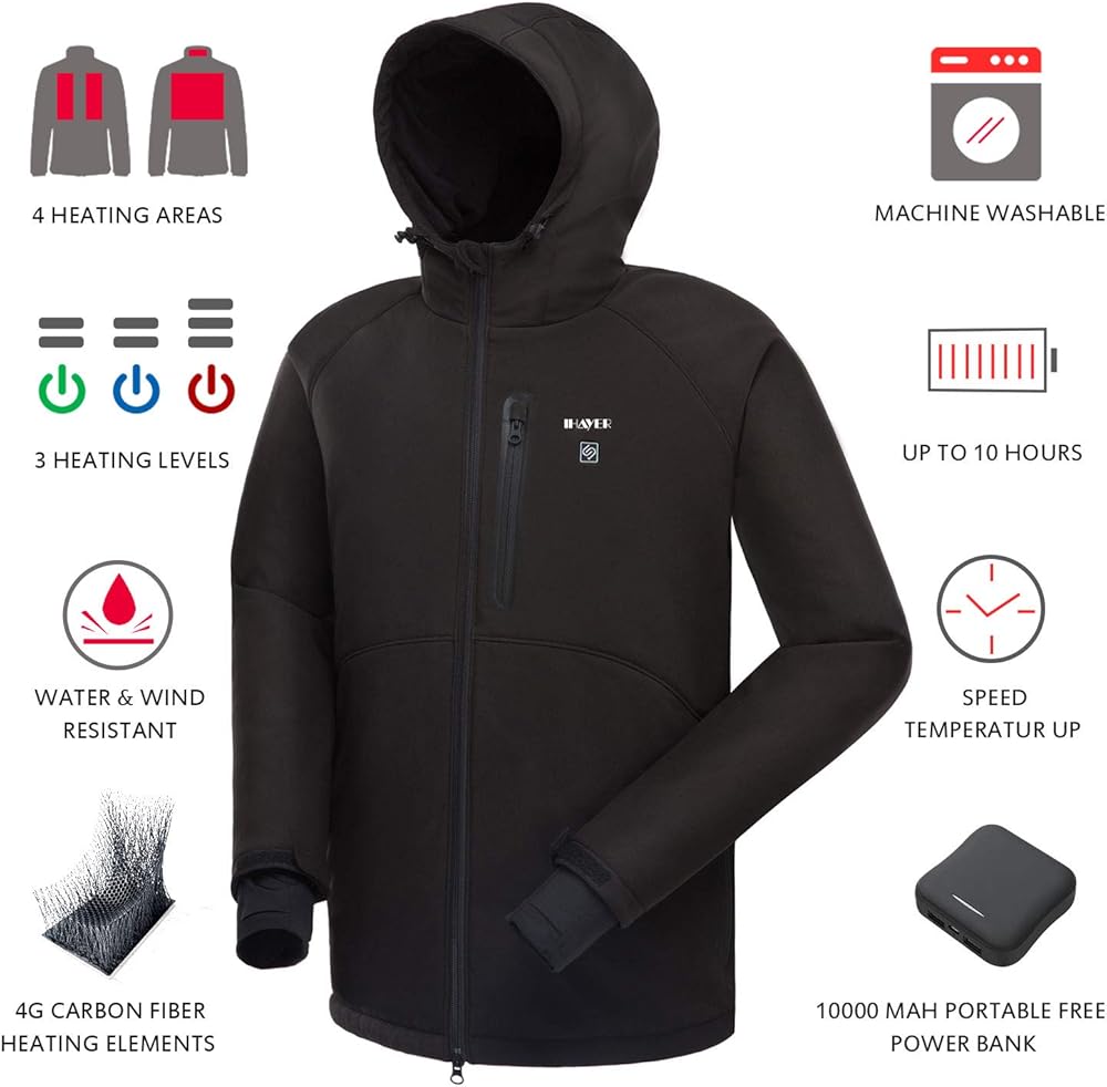 السلامة وسهولة العناية: تصميم إيقاف تلقائي للحفاظ على سلامتك. يمكن غسله في الغسالة (مع إزالة البطارية) - تم اختبار عناصر التسخين المصنوعة من ألياف الكربون والسترة أكثر من 50 مرة من الغسيل في الغسالة. تحصل سترة IHAYNER المُدفأة على طاقتها من بطارية خارجية ذات منافذ USB مزدوجة (مضمنة) ذات سعة كبيرة وخفيفة الوزن وصغيرة الحجم يمكن استخدامها أيضًا لشحن هاتفك المحمول أو أي أجهزة محمولة أخرى. سوف تحب أيام الشتاء مع الملابس الذكية من IHAYNER.
