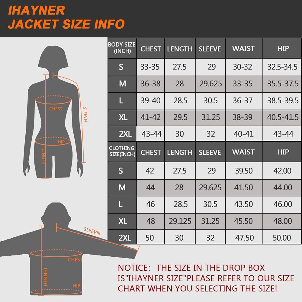تصميم أنيق ومفيد: سترة IHAYNER المُدفأة بجيوب متعددة (جيبان جانبيان، وجيب أمامي وجيب خاص خارجي وداخلي على الصدر الأيسر وجيب واحد للبطارية على الخصر) تُحرر يديك في يوم شتاء بارد. يمكنك العثور على مساحة لكل ما تحتاجه تقريبًا لممارسة الرياضة والحياة اليومية. يريحك التصميم النحيف من القلق بشأن الحجم الكبير أثناء الاستمتاع بالأنشطة الخارجية.