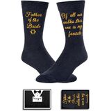 • FATHER SOCKS: These funny black dress socks have the gloden saying "Of all our walks, this one is my favorite Father of the Bride" on the side.