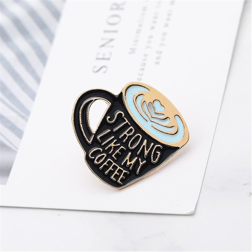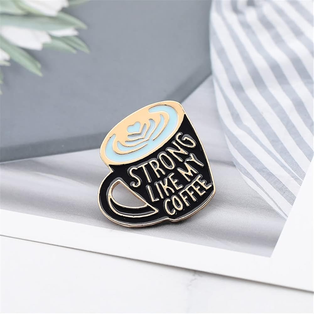 Strong Like My Coffee Enamel Pin Creative Coffee Cup Enamel Pin Cartoon Enamel Lapel Pin Brooch Badge for Clothes Accessories Pin for Men Women Coffee Lover Pin, Metal, no gemstone