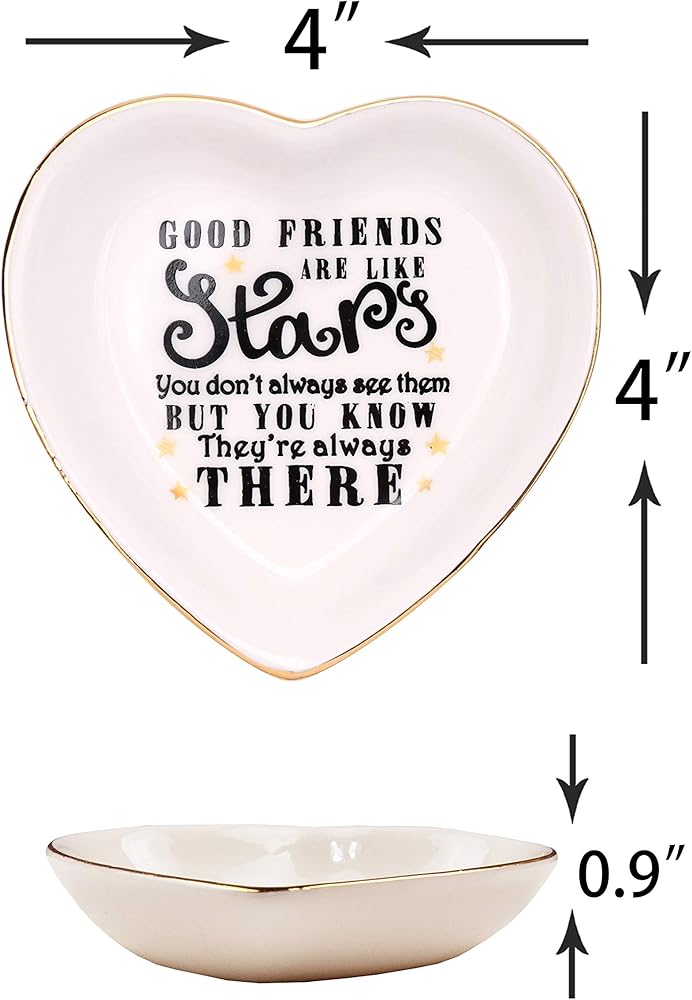 طبق حلية Good Friends are Like Stars Trinket: مجموعة الهدايا التي نقدمها لأفضل الأصدقاء تشتمل على هدايا لأفضل الأصدقاء طبق حلى نسائي مطبوع عليه عبارات "الأصدقاء الجيدون مثل النجوم، لا تراهم دائمًا ولكنك تعلم أنهم موجودون دائمًا". عيد الميلاد صينية هدايا الأصدقاء هي هدية عيد ميلاد رائعة للأصدقاء الإناث، أفضل هدايا الأصدقاء للنساء، أفضل هدايا عيد ميلاد الصديق.