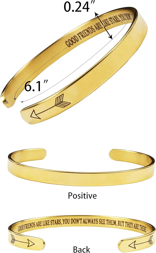 سوار الأصدقاء الجيدين مثل النجوم: مجموعة هدايا أفضل الأصدقاء تتضمن هدية صداقة واحدة للنساء، سوار منقوش عليه أقوال "الأصدقاء الجيدون مثل النجوم، لا تراهم دائمًا ولكنك تعلم أنهم موجودون دائمًا"، مجوهرات للأفضل عيد ميلاد صديق.