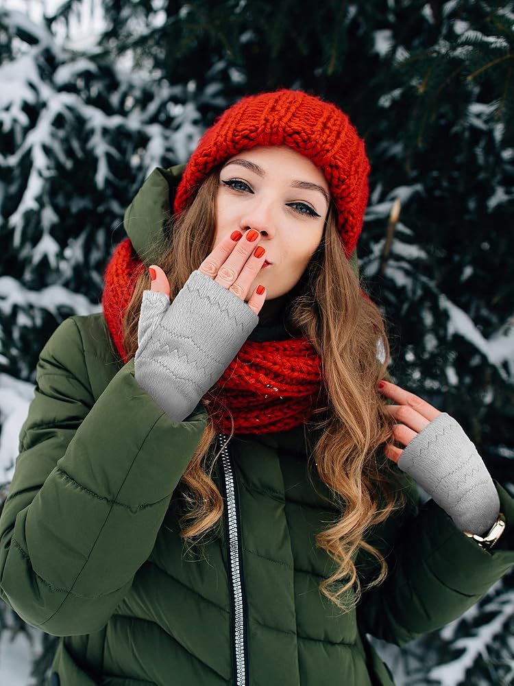 تصميم مدروس ومراعي: تتميز القفازات الصوفية للنساء والرجال بتصميم بدون أصابع، مما يسمح لك باستخدام أصابعك بمرونة دون خلع القفازات، عند العمل والكتابة واللعب بالهاتف والرد على المكالمات وممارسة الرياضة وغير ذلك الكثير