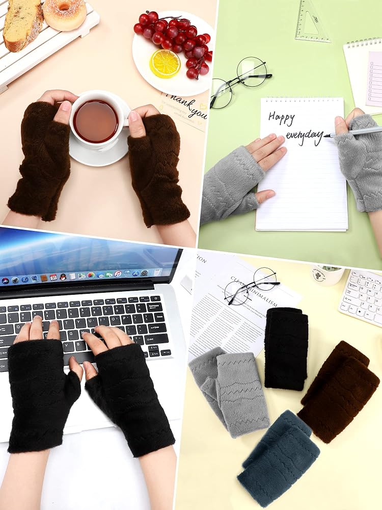 كمية وفيرة للاستخدام: تحتوي العبوة على 4 أزواج من القفازات الشتوية بدون أصابع للنساء والرجال، تأتي في 4 ألوان متنوعة، بما في ذلك الأسود والرمادي الداكن والرمادي الفاتح والبني، الكمية كافية لتلبية احتياجاتك اليومية من المطابقة والاستبدال، يمكنك أيضًا مشاركتها مع عائلتك وأصدقائك
