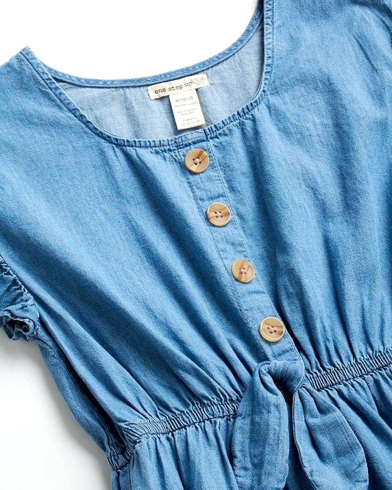 One Step Up Girls' Dress - Lightweight Challis Button Front Denim Sundress is perfect for your little princess. With multiple color options and cute prints, this lightweight girls' denim dress is the best choice for dance costumes, dress-up, and casual parties, as well as for daily wear, holidays, and other special occasions. She'll love expressing her own personal flair in this summer-themed slip-on dress. LASTING COMFORT: She can run, jump, and explore as much as she likes. This button-front denim dress will keep up with her all day long and withstand all her summer adventures. FUN DESIGNS: Let your daughter express herself with these adorable multicolor sundresses. A fashionable outfit for little girls. VERSATILE enough to be worn alone or under a light sweater or jacket. This denim sundress for girls is a great addition also to her cool-weather wardrobe. GREAT GIFT: Get this super soft denim sundress as a gift for your daughter, granddaughter, niece, or little sister and expand her collection of summer outfits. EASY TO CLEAN: Simple to machine wash and dry; Please Reference the Variations for all Available Sizes and Colors. One Step Up Offers Premium Clothing at Affordable Prices because we value every customer that visits our listings! Stop by Our Storefront to See the Rest of Our Great Deals; we're confident you're going to find items that anyone who needs a gift will really appreciate!