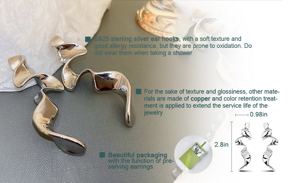 Earring Size Measuring at 2.3x0.9 inches,Weight: 31.5 g; these earrings are the ideal size to make a stylish statement. Please note that the ear hooks may experience slight deformation during transportation. If this occurs, simply straighten them by hand for easy adjustment and continued wear..Expertly Handcrafted Spiral Design Each pair of earrings is meticulously handcrafted with love by our highly skilled artisans.