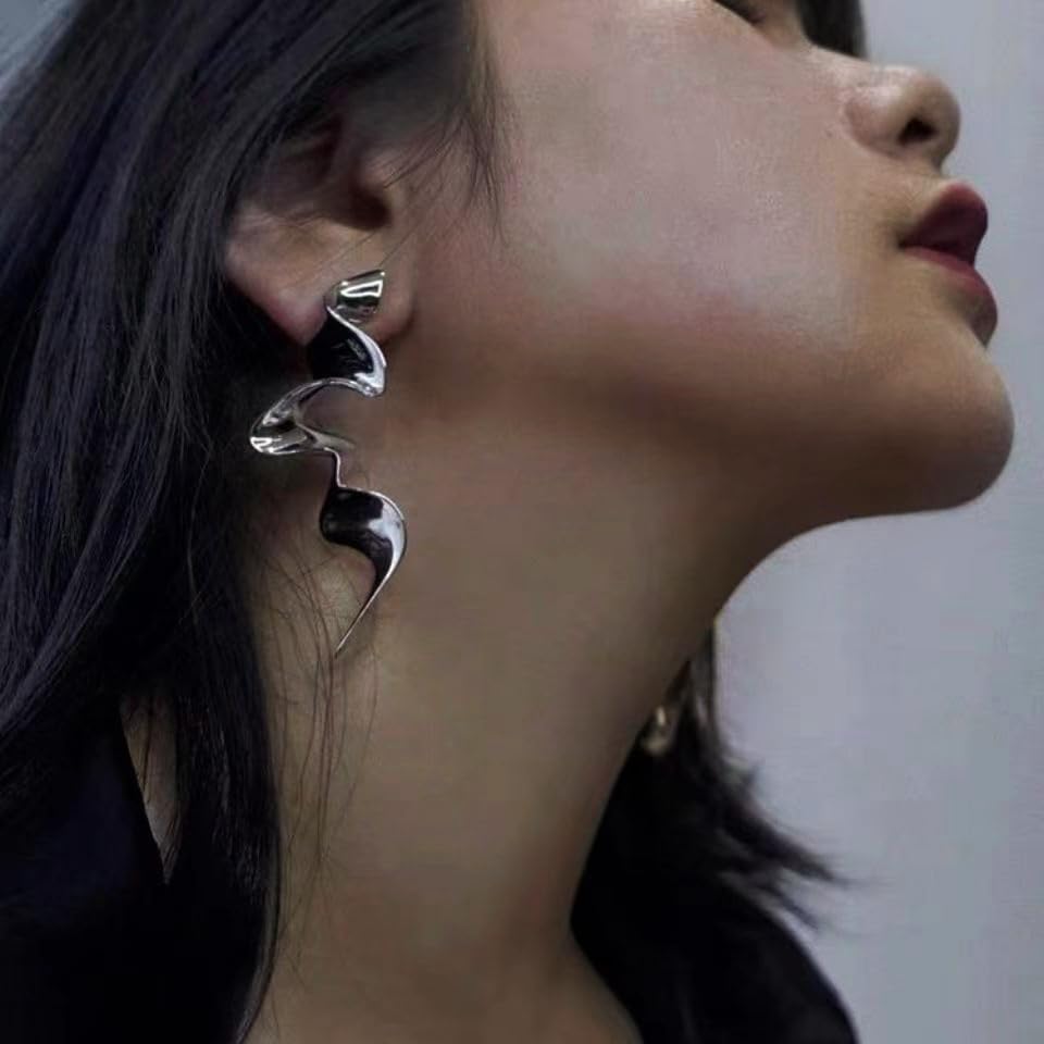 Mesmerizing Twisted Geometric Design The twisted geometric pattern of these earrings creates a captivating visual effect that is sure to turn heads. It adds a touch of intrigue and uniqueness to your jewelry collection. Perfect for individuals who appreciate bold and distinctive accessories that make a statement.