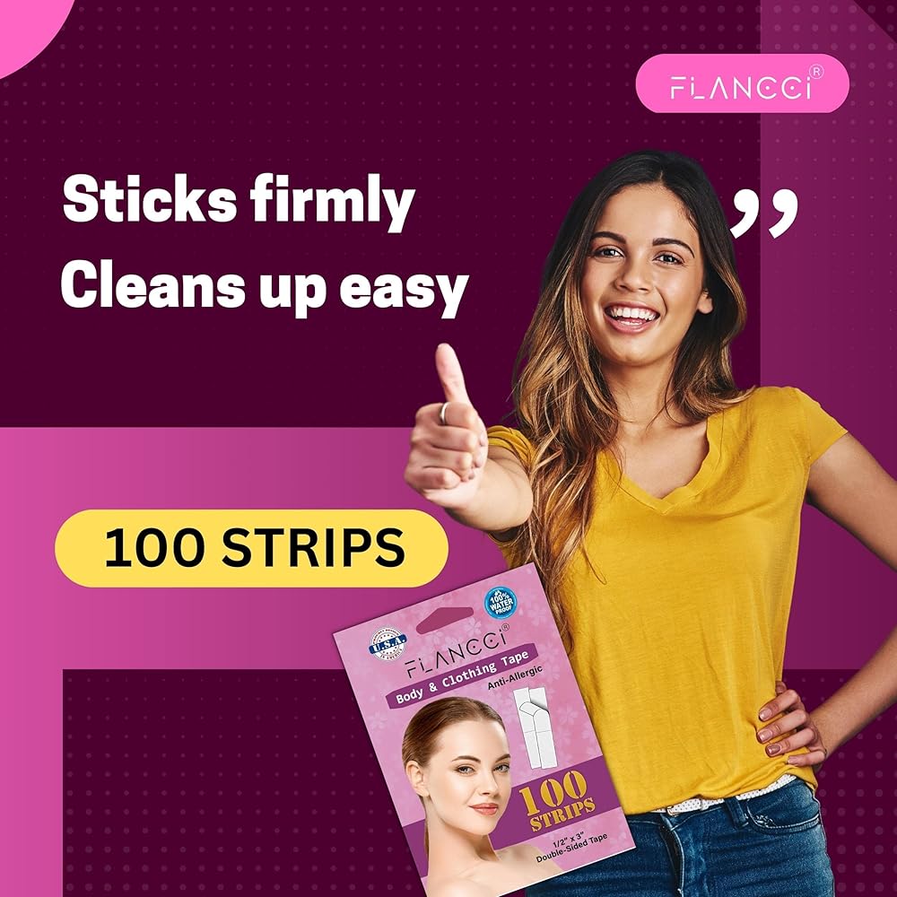 شريط مزدوج الجوانب للملابس، (عبوة من 100 قطعة) شريط ملابس تجميل للنساء، شريط ملابس وشريط للجسم للبشرة، شريط لاصق قوي طوال اليوم، شريط غير مرئي وشفاف لجميع ظلال البشرة