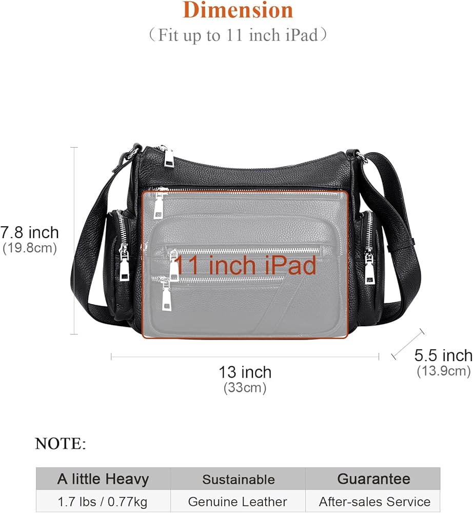 【الأبعاد 】: الحجم: (طول) 13 × (عرض) 5 × (ارتفاع) 7.8 بوصة، مع حزام كتف طويل قابل للتعديل 28-51 بوصة. الوزن الصافي: 1.7 رطل / 0.77 كجم.