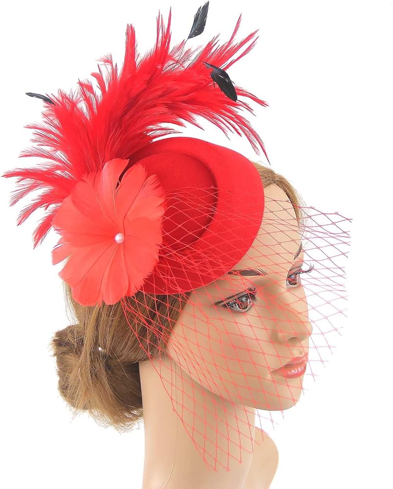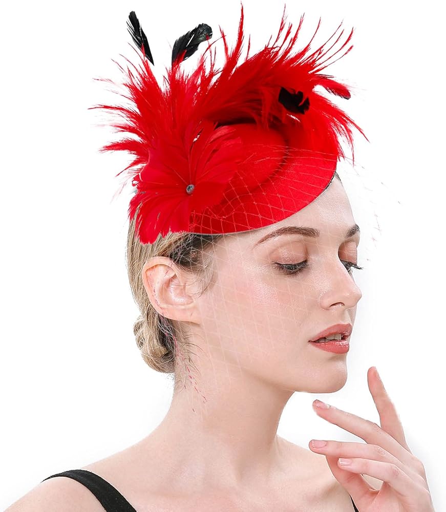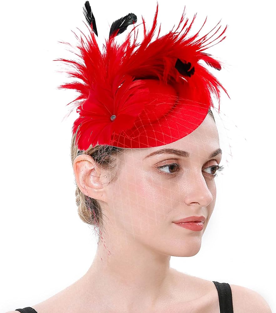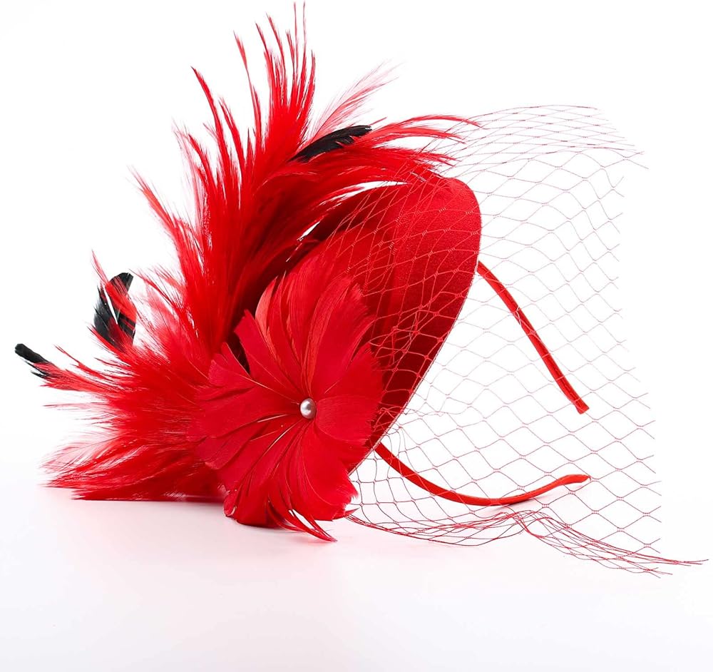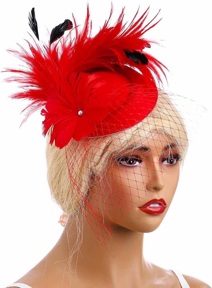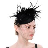 تتكون قبعة حفلات الشاي الرائعة للنساء من كمية مناسبة من الشبكة والريش والزهور واللؤلؤ المزين بالريش، وهو أنيق وجميل.