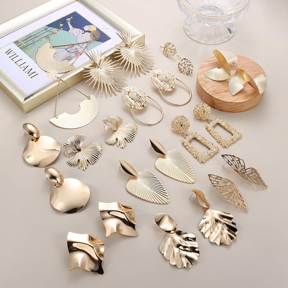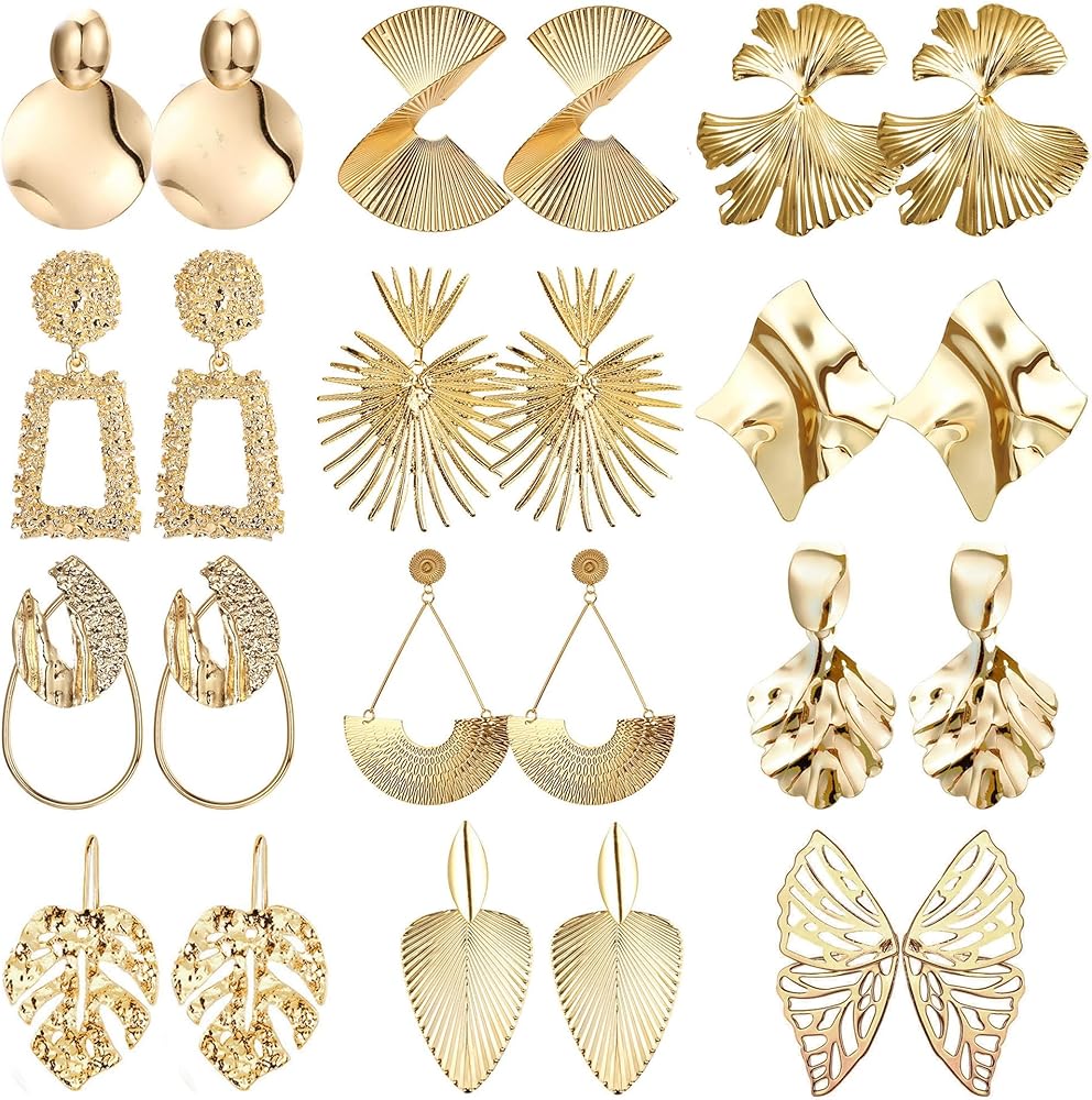 【Statement Earrings Set】Comes with 12/13pairs statement earrings in a set, including sectored twisted earrings, leaf earrings, big circle earrings, spherical earrings and so on, trendy design, rich quantity, luxurious texture, gold statement earrings for women can meet your diverse wear needs.