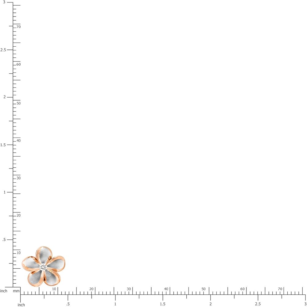زوج من أقراط بلوميريا ذات لونين، كل منها مع مركز حجر تشيكوسلوفاكيا وميض. يبلغ عرض الزهور 12 مم (حوالي 1/2 بوصة). مصنوع من الفضة الاسترليني مع لمسة نهائية من الذهب الوردي عيار 14. تتضمن علبة هدية. من شركة هونولولو للمجوهرات، هونولو، هاواي.