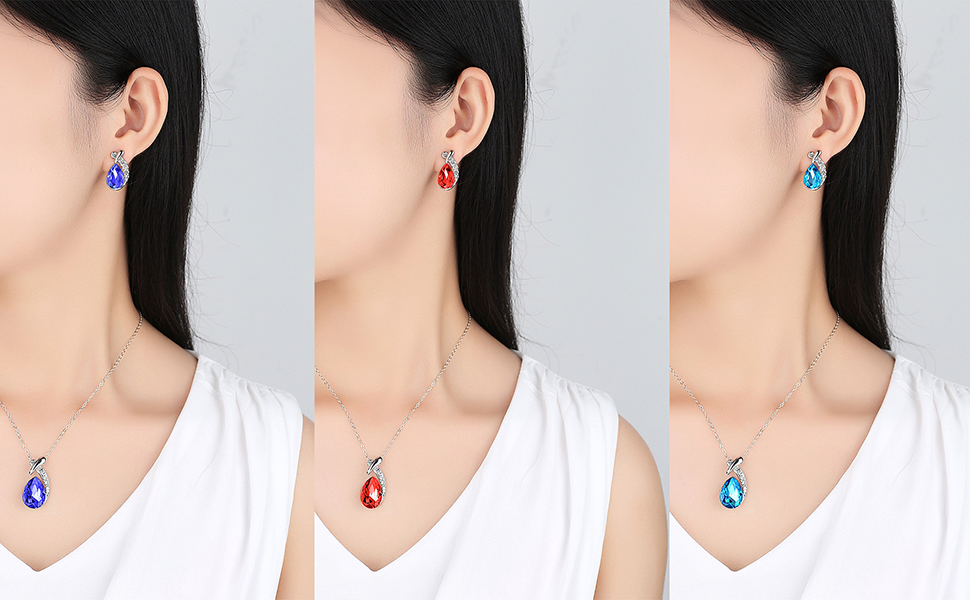 تفاصيل العبوة: 1 × قلادة سلسلة 1 × زوج من الأقراط المرصعة