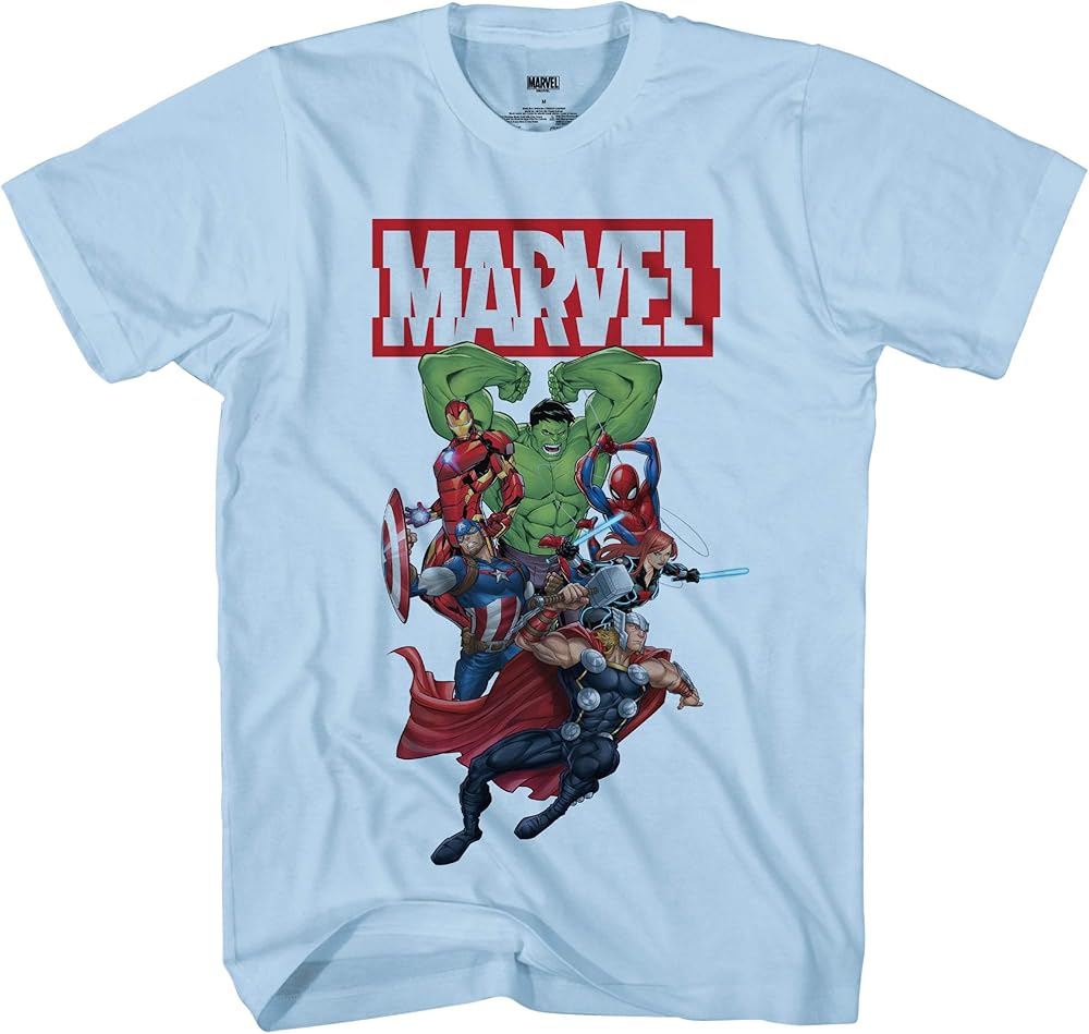 • ✔ قصص مارفيل كوميكس: استرجع تلك الذكريات مع تي شيرت مجموعة مارفيل Comics الذي يضم: سبايدرمان، كابتن أمريكا، ايرون مان وهالك.