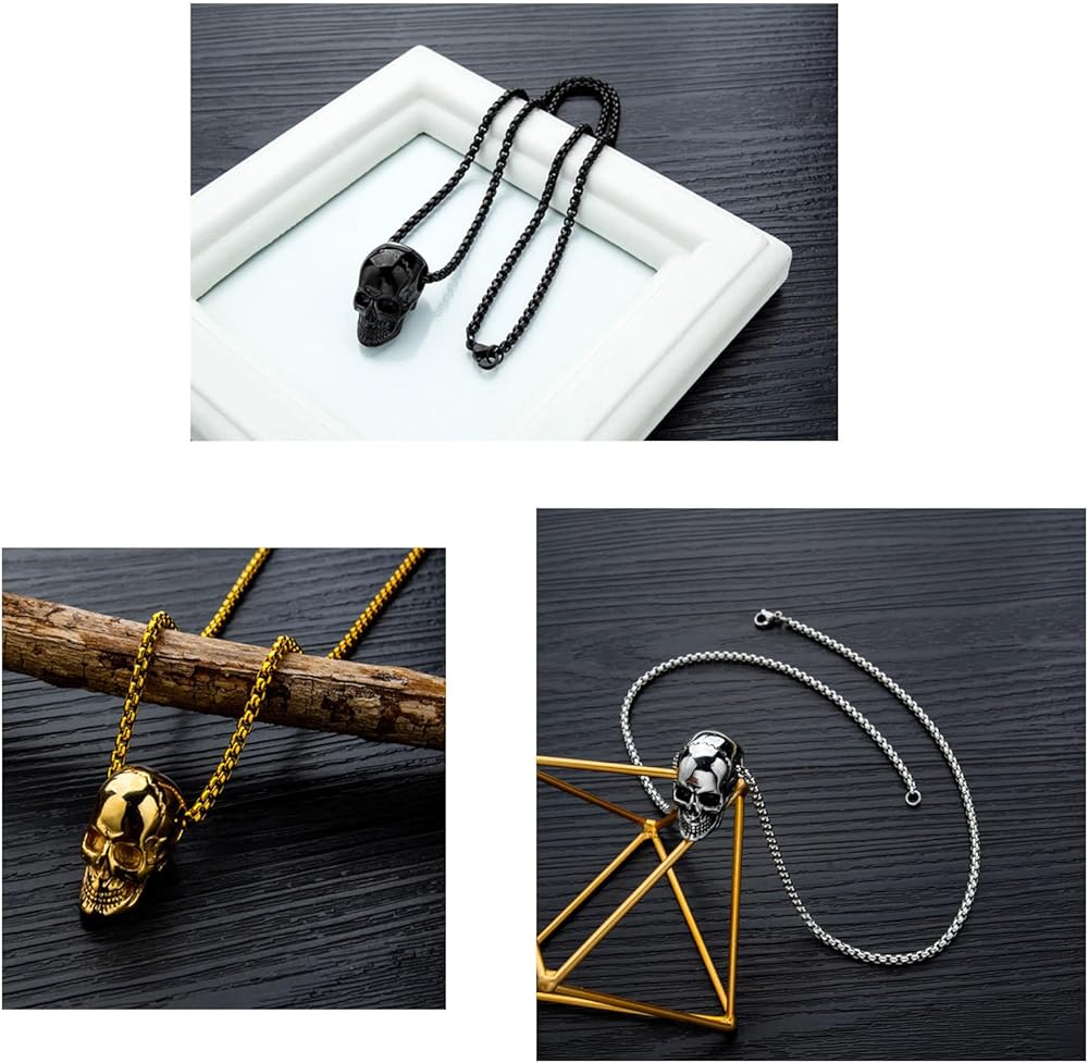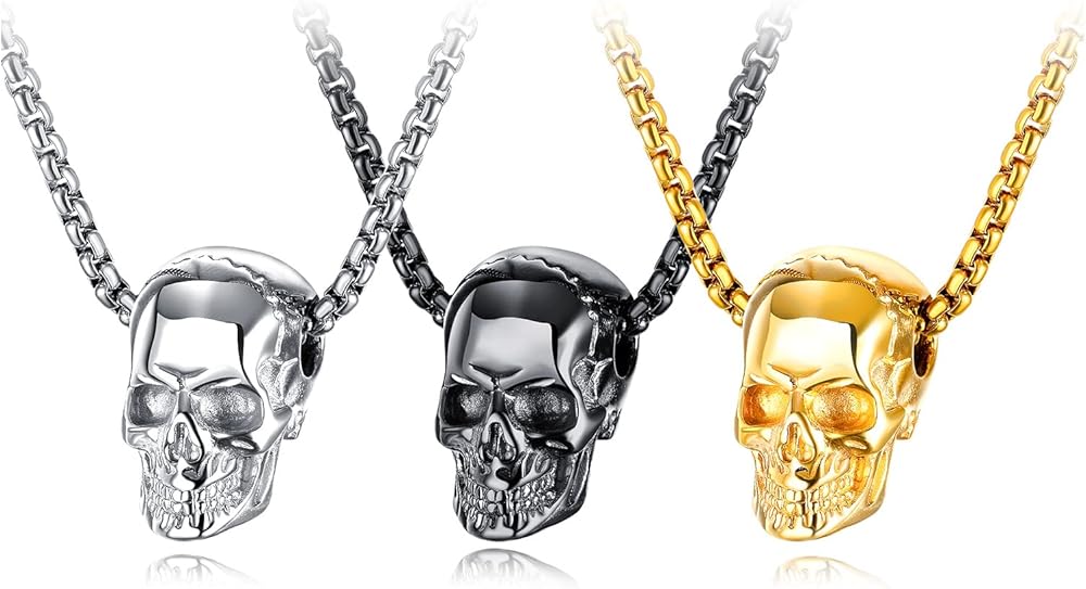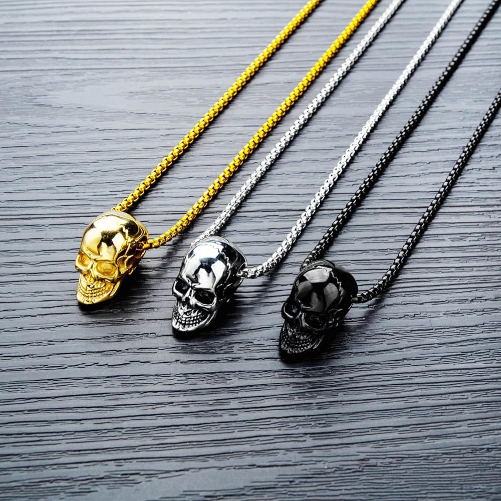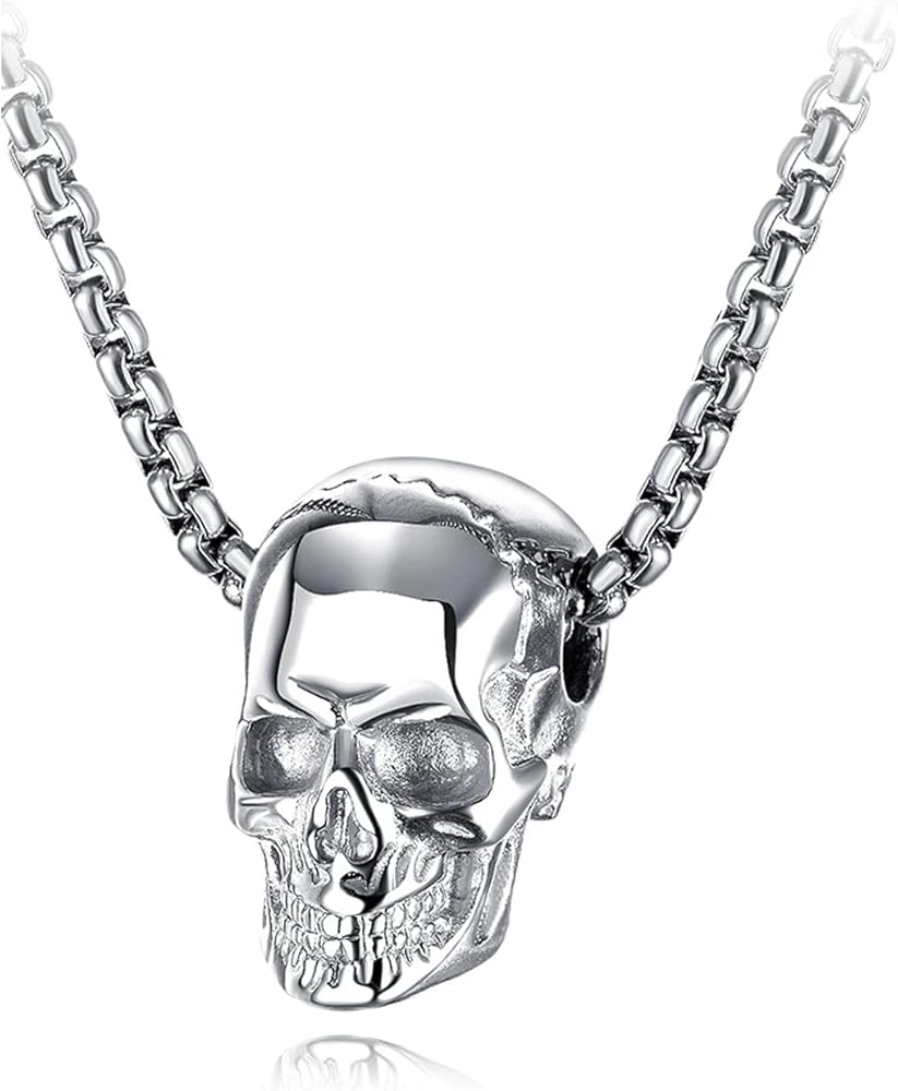 • Material: our skull necklace is made of high quality stainless steel, highly durable and not easy to irritate the skin. The surface is not susceptible to environmental changes and will remain shiny and smooth for long periods of wear.