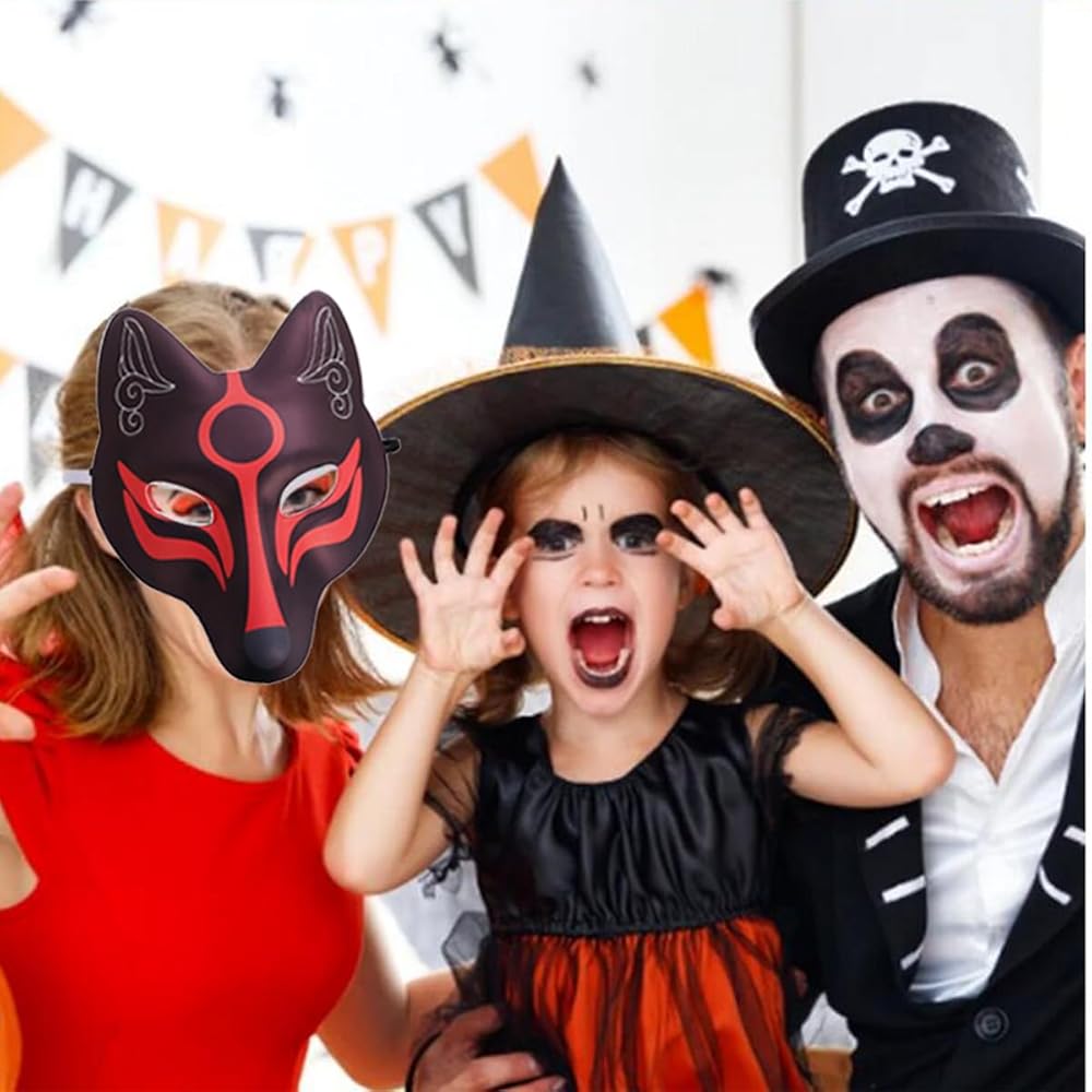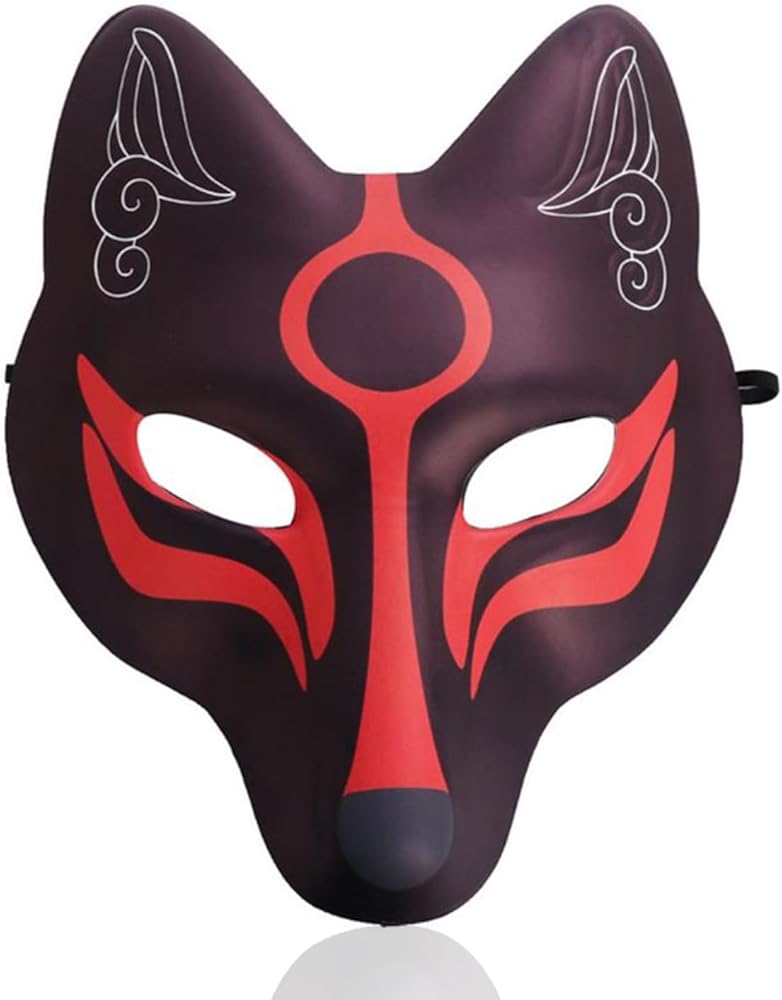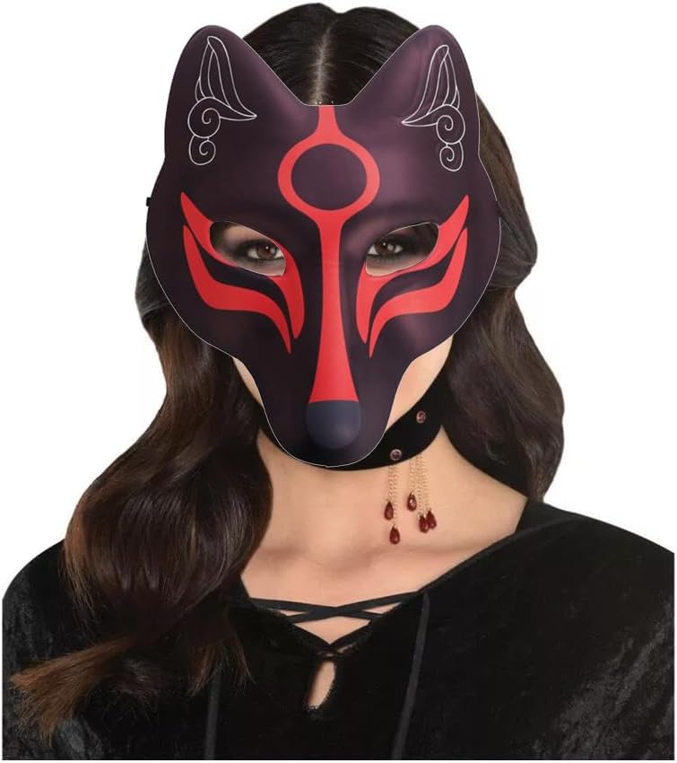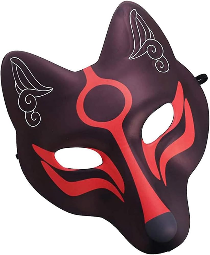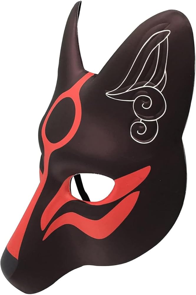 قناع الثعلب قناع كيتسون قناع ياباني قناع كابوكي قناع تنكر للنساء وجه كامل للبالغين والأطفال قناع أسود للهالوين لزي قناع الأنيمي