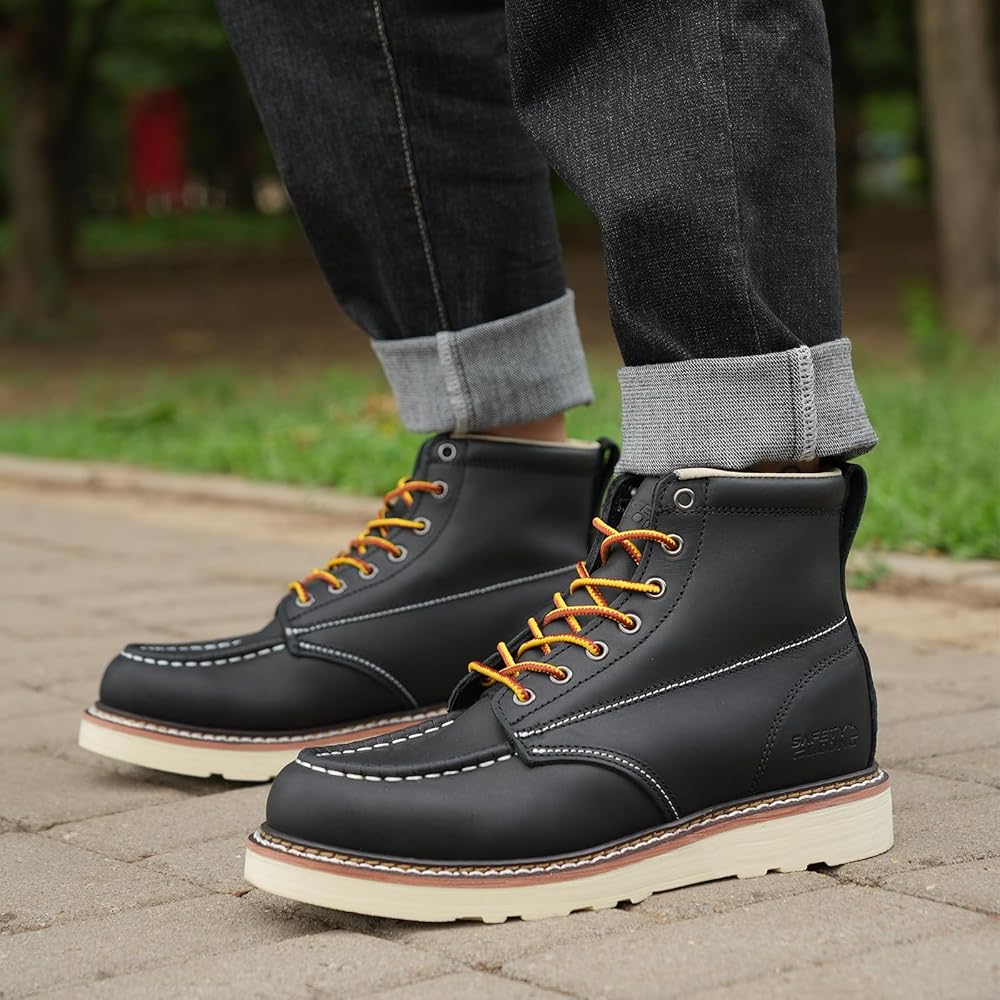 هيكل متين: تشتهر أحذية العمل للرجال من سايفتي لونج بمتانتها الاستثنائية، وهي مصممة لتحمل أصعب ظروف العمل. مصنوعة من مواد عالية الجودة، بما في ذلك الجلد الفاخر والخياطة القوية، تضمن ارتداء طويل الأمد وأداء موثوق به