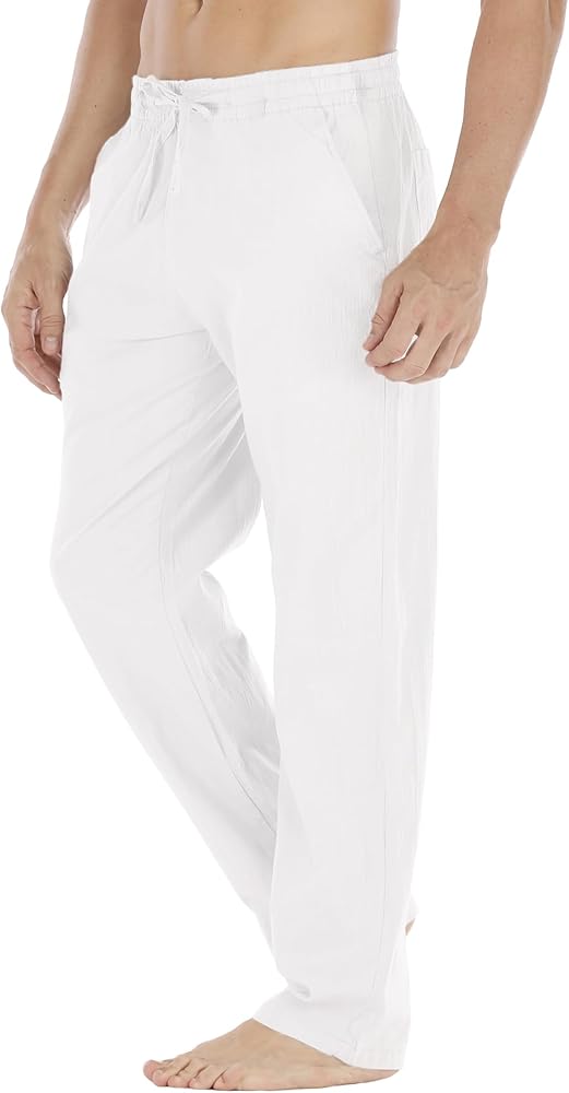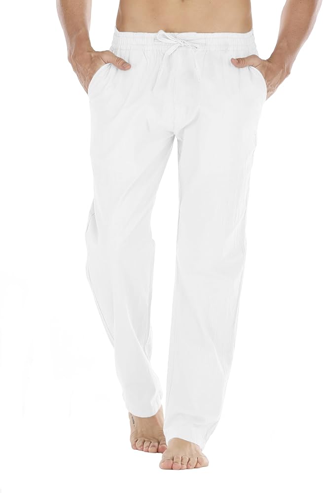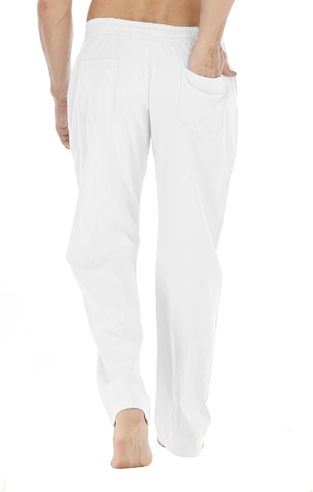 【متعددة الاستخدامات والمناسبات】لوقت الاسترخاء اليومي، يمكنك ارتداؤه مع قمصان أو أحذية أو شباشب كاجوال، واستمتع بالاسترخاء والشعور بالراحة. بالإضافة إلى ذلك، فإن البنطلون الكتاني مناسب أيضًا للمناسبات الخاصة، مثل عطلة الصيف على الشاطئ أو أنشطة النزهة في الريف، بحيث يمكنك التمتع الكامل بالشمس الدافئة والتنفس الطبيعي.